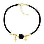 585 Goldarmband schwarze und weiße Kleeblätter in Goldfassung Onyx Perlmutt