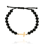 Herren-Goldarmband 585 Kreuz schwarze Turmalin-Perlen auf Schnur