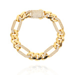 Damen Gold 585 gepanzert breites Armband mit Zirkonen auf Schließe 19 cm