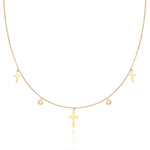 Gold 585 Halskette mit Kreuzen und weißem Zirkonia als Fußkettchen