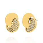 Goldene Ohrringe 585 groß 3D diamantiert Weiß- und Gelbgold auf Steckstecker