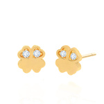 Goldene Kleeblatt-Ohrringe 585 Blumen Zirkonia auf Stecksteckern