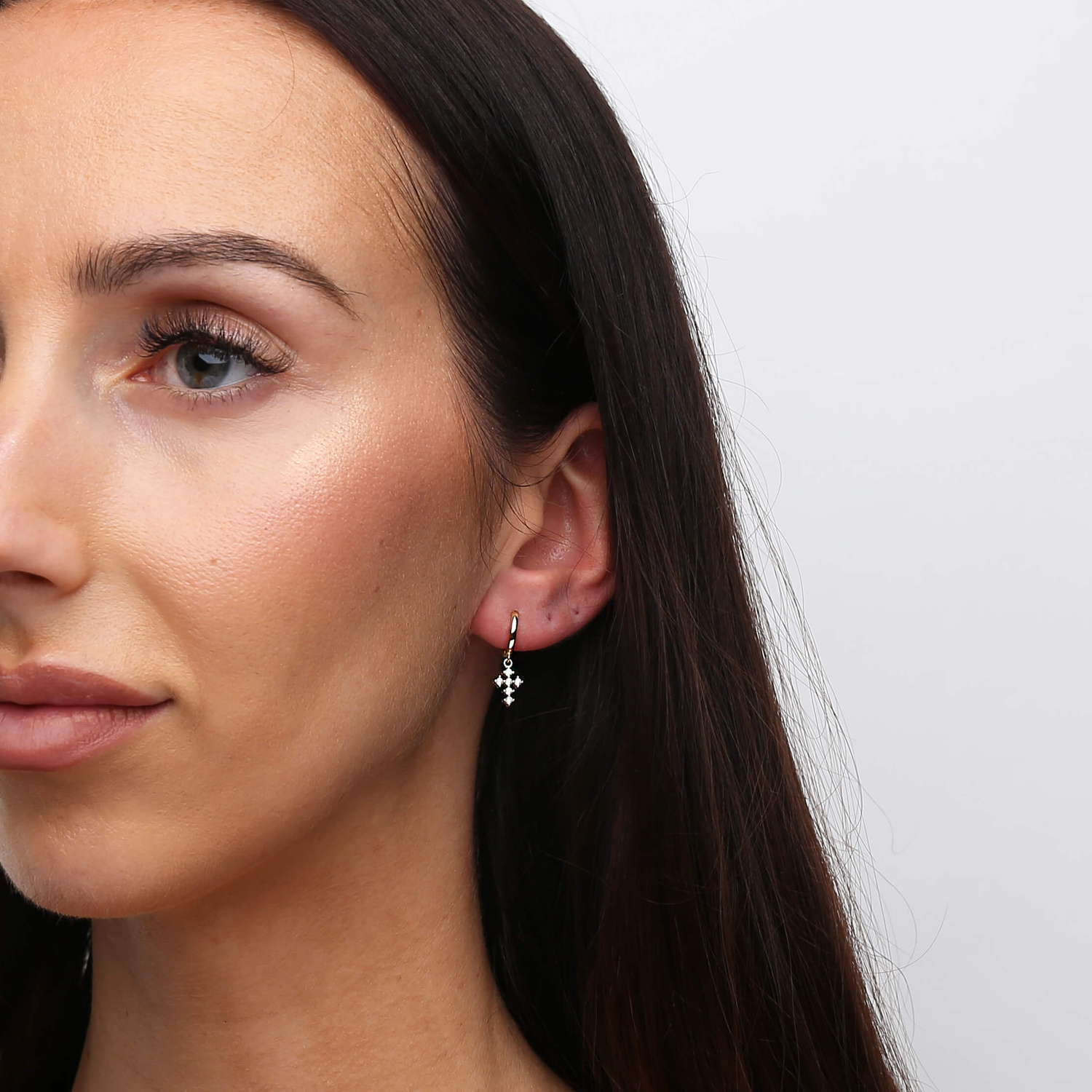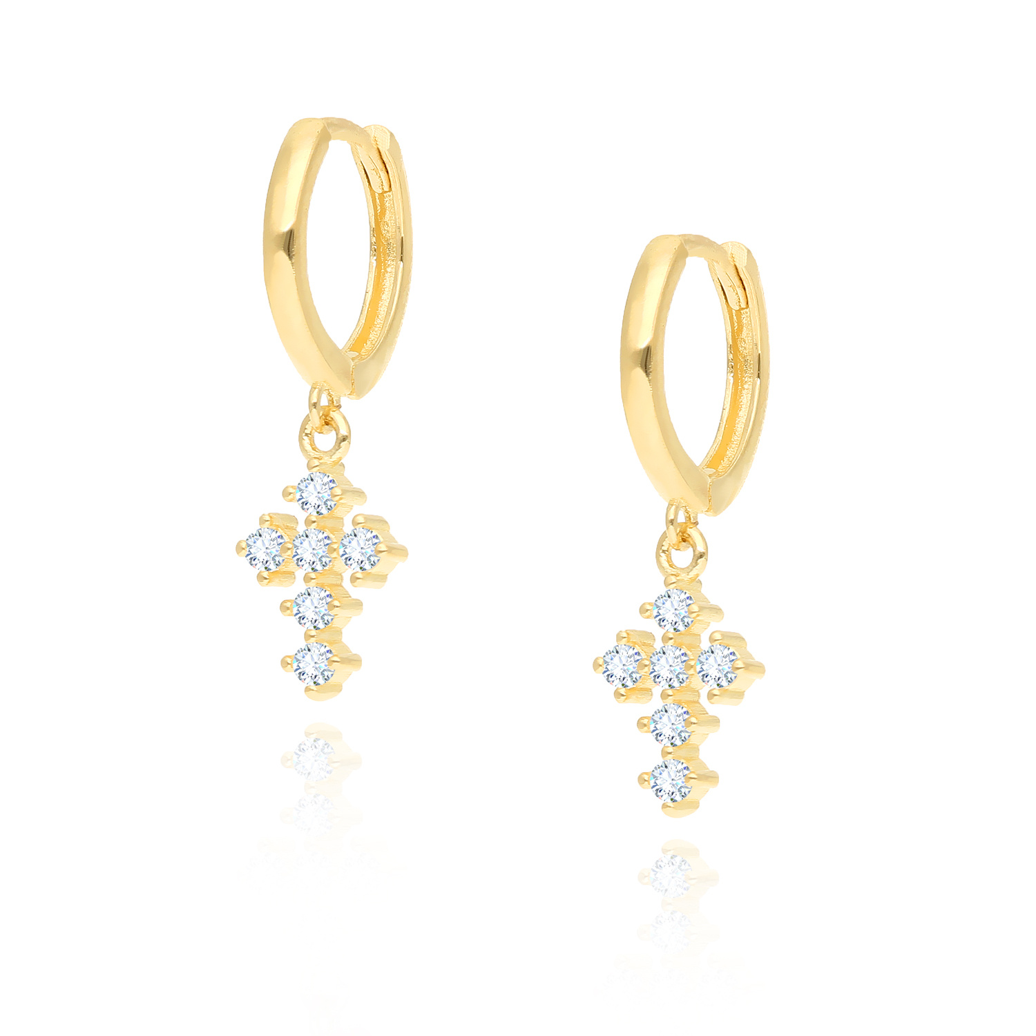 Goldanhänger-Ohrringe mit Zirkonen. Handgefertigt mit größter Sorgfalt aus hochwertigem 585er Gold (14 Karat Gold). Die Verzierung mit Zirkonen lässt die Ohrringe schön im Licht schimmern und zieht die Blicke auf sich. Kreisverschluss mit Druckknopf für hohen Tragekomfort. Ein wunderbarer Vorschlag als Geschenk für viele Gelegenheiten für einen besonderen Menschen.