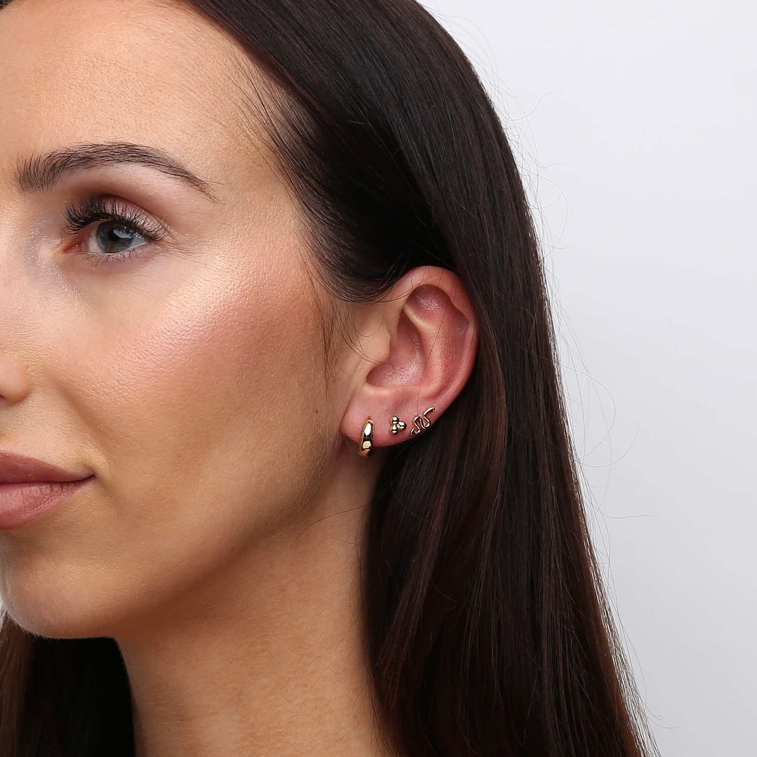 Kreis Ohrringe Gold 585 kleine Kugeln auf Snap 1,2 cm