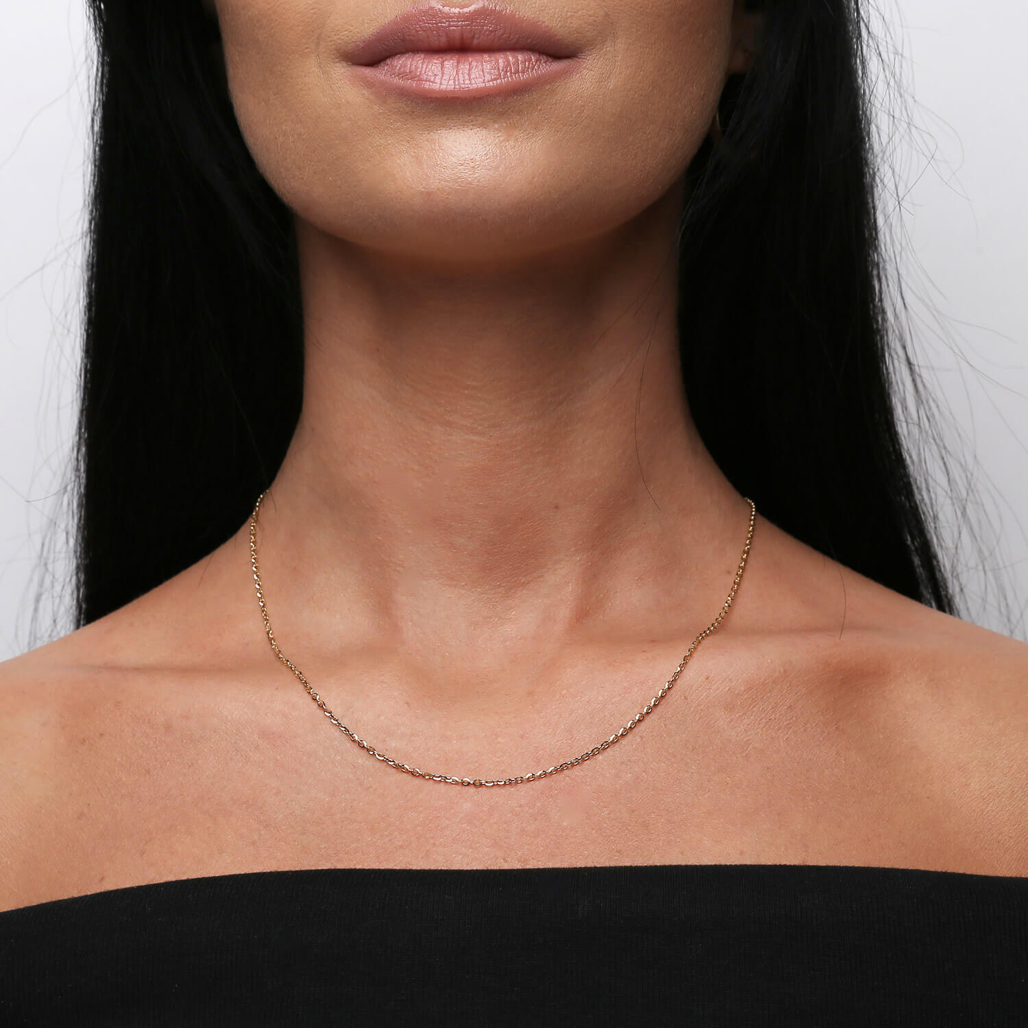 Goldkette 585 Ankier Diamant 1 mm runde Glieder verstellbare Länge 42 - 45 cm