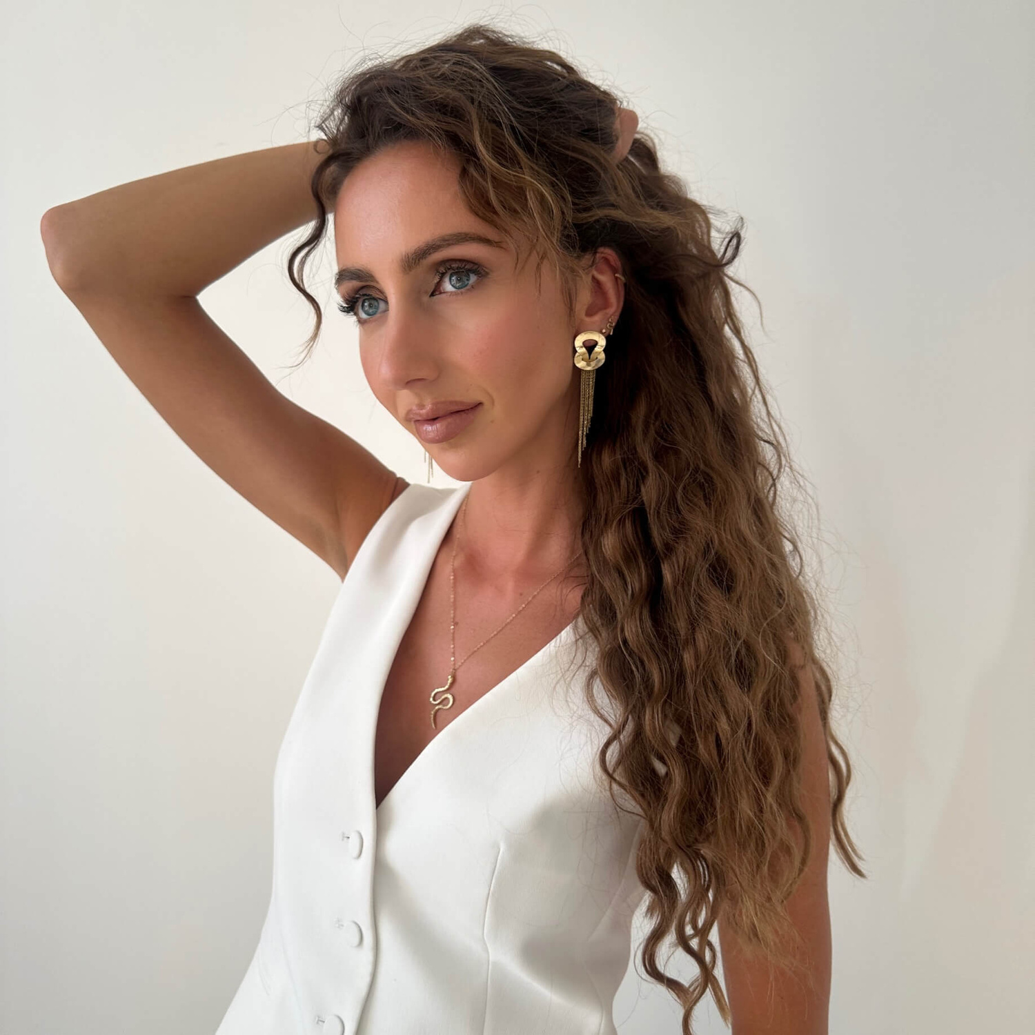 Elegante goldene lange Ohrringe mit Ketten. Mit größter Sorgfalt aus hochreinem Gold 585 (14 Karat Gold) handgefertigt. Sie schimmern wunderschön im Licht und sind die perfekte Ergänzung für ein elegantes Styling. Stiftförmige Befestigung. Ein wunderbarer Vorschlag als Geschenk für viele Gelegenheiten für einen geliebten Menschen.