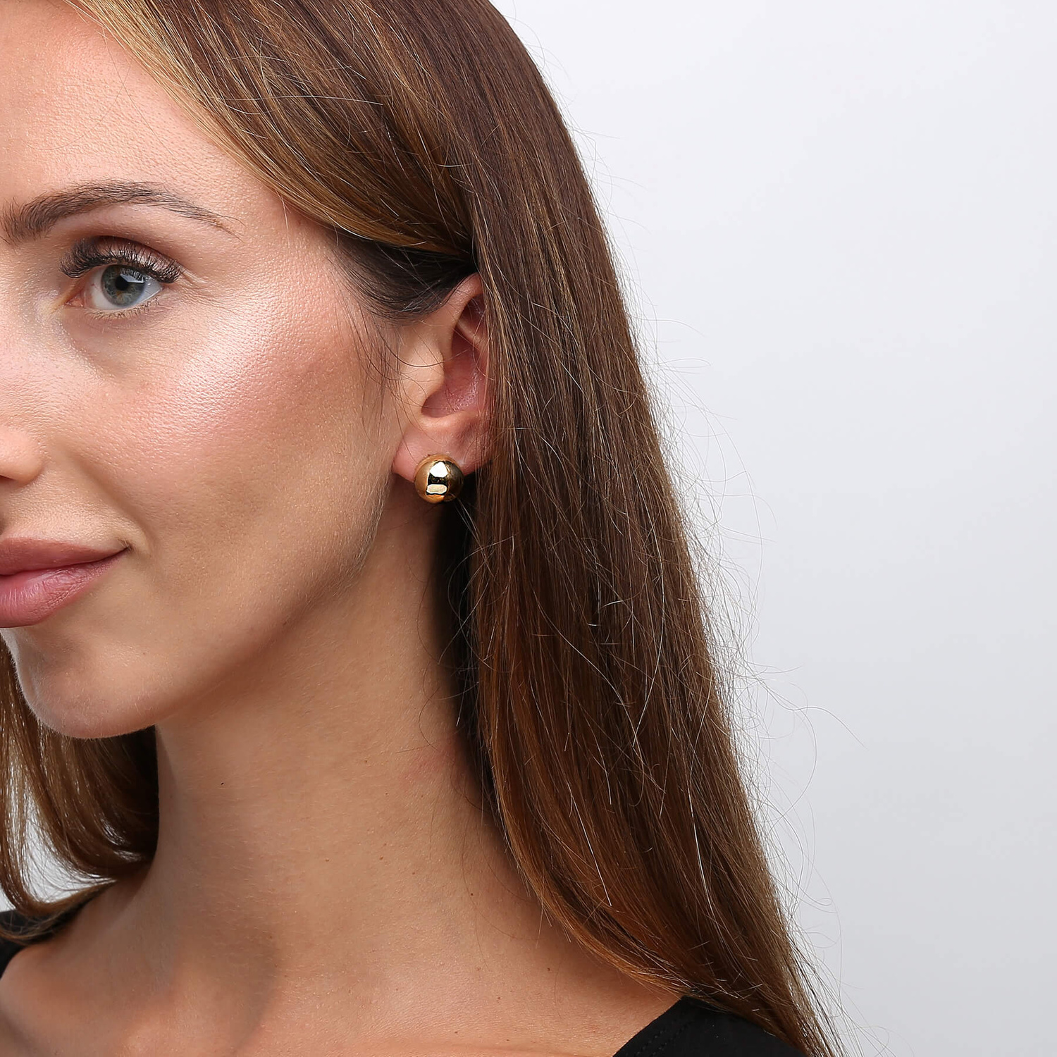 Goldene Kugelohrringe, einfarbig, an einer Stange. Hergestellt mit der größten Sorgfalt aus gelbem 585-Probe Gold - 14 Karat. Ohrringe mit glatter Oberfläche, glänzen schön im Licht. Ideal als Geschenk für einen Freund oder eine geliebte Person.