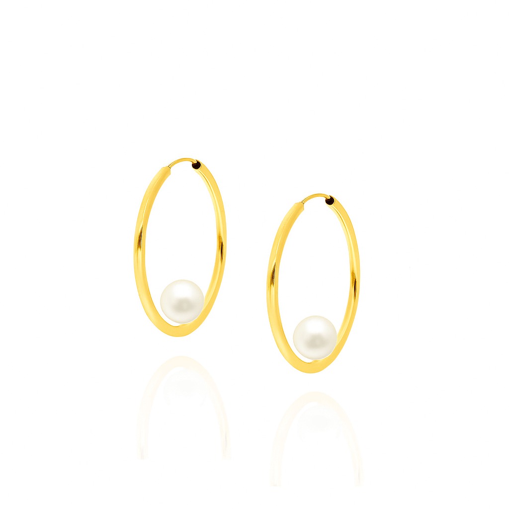 - Elegante goldene Ohrstecker mit weißer Perle und praktischem Druckknopfverschluss.