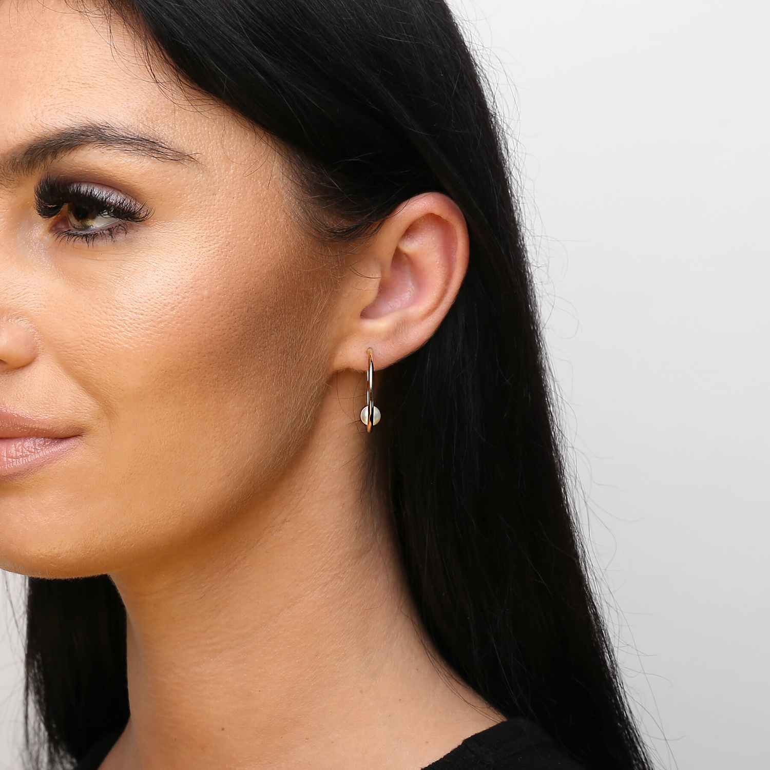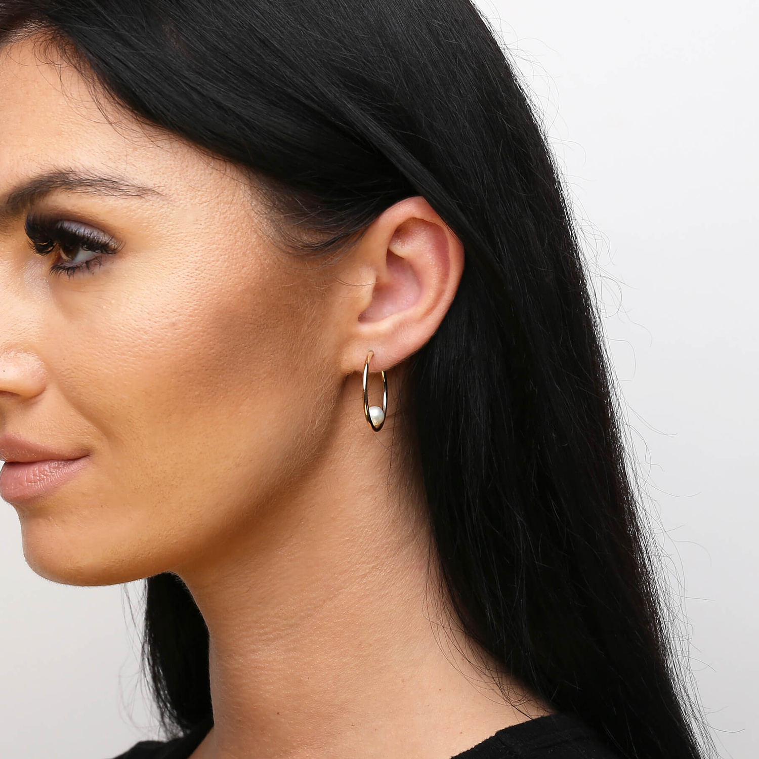Außergewöhnliche Ohrringe aus 585er Gelbgold (14 Karat). Der englische Druckknopfverschluss ermöglicht ein bequemes An- und Ausziehen. Die Perle verleiht den Ohrringen Subtilität. Sie sind eine charmante Ergänzung für viele Outfits.