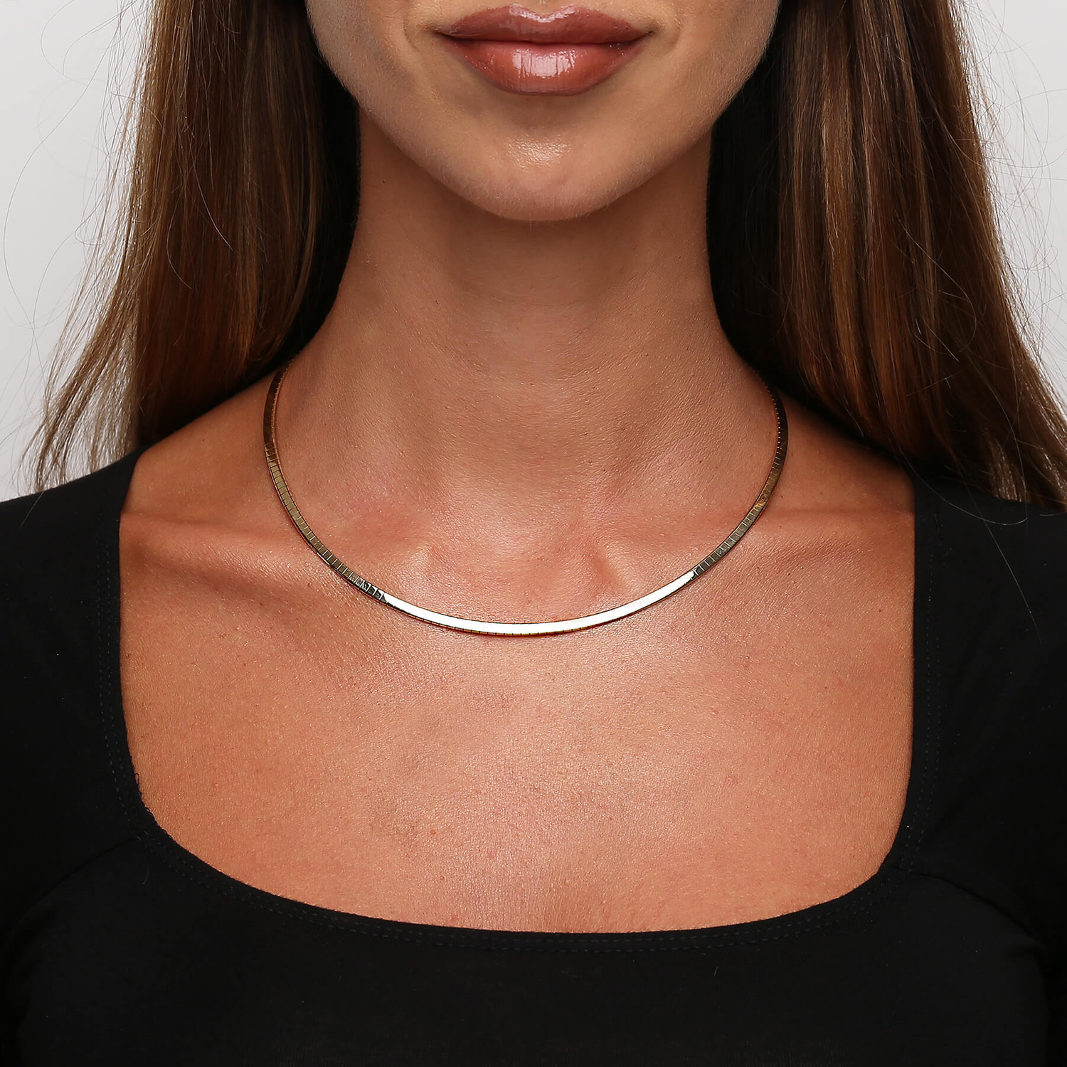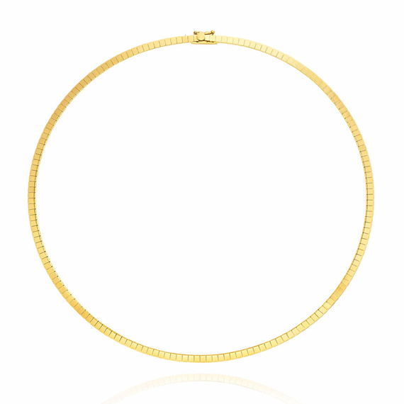 Original goldene Halskette mit halbstarrem und elastischem Band. Hergestellt aus hochwertigem Gelbgold muster 585 (14 Karat). Ein schönes, modernes Design für selbstbewusste Frauen. Halskette komplett mit Armband.