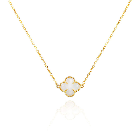 Goldklee-Halskette 585 Kleeblume aus natürlichem Perlmutt 36-40 cm