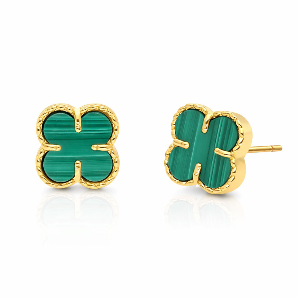 Gold Klee Ohrringe 585 Kleeblätter Blumen natürlichen Malachit auf Stick