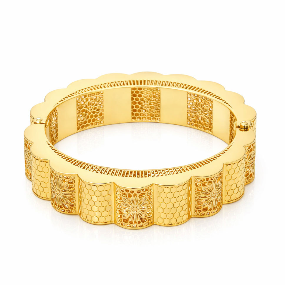 Gold 585 Frauen durchbrochene Armspange Armband steif dekorativ