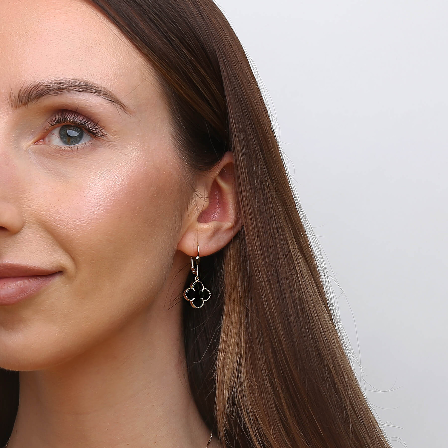 Gold große schwarze Kleeblätter Anhänger Ohrringe 585 natürlichen Onyx Englisch