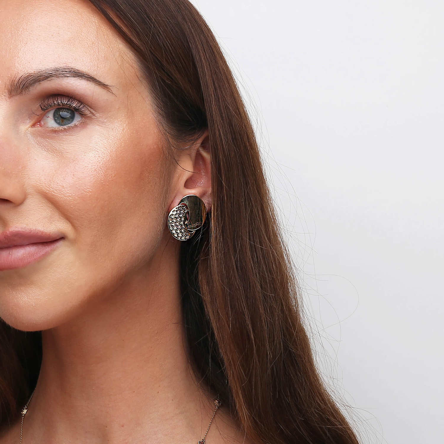 Goldene Ohrringe 585 groß 3D diamantiert Weiß- und Gelbgold auf Steckstecker