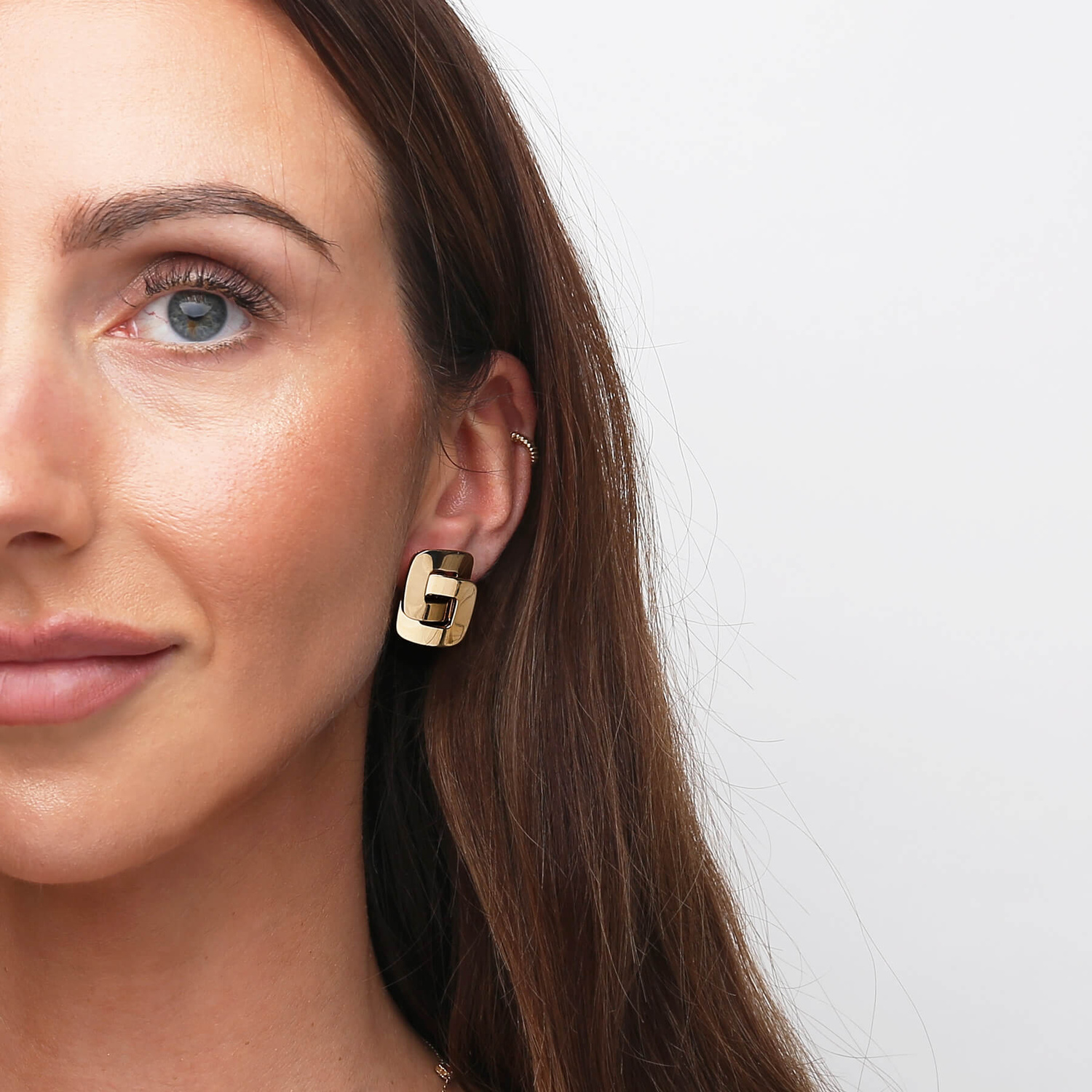 - Moderne Ohrringe aus 585er Gelbgold (14 Karat). Die geometrische Form setzt sowohl bei Alltags- als auch bei Abendoutfits einen markanten Akzent.