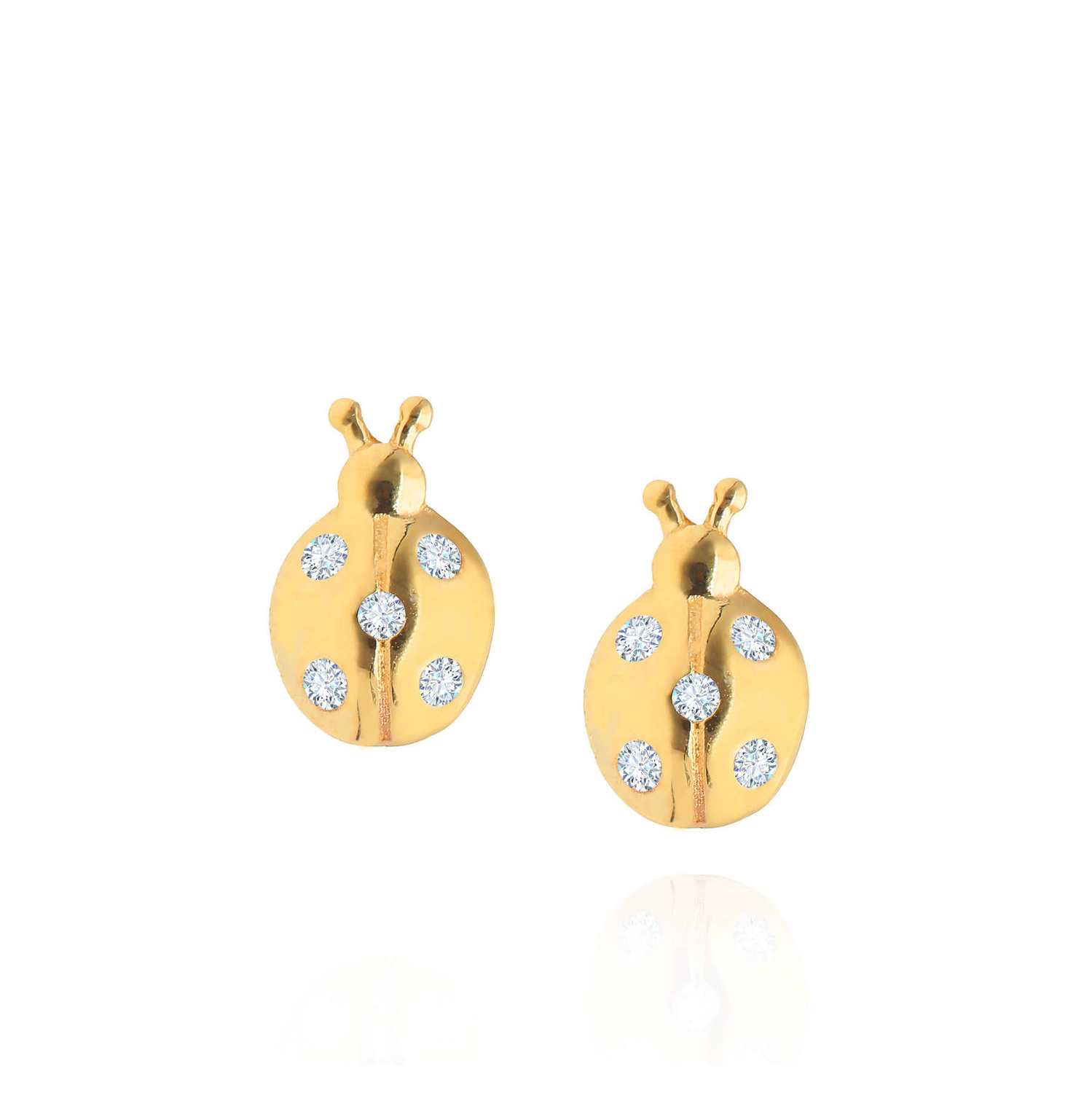 Goldene Ohrringe mit Marienkäfer 585 Zirkonia für Mädchen auf Stecksteckern
