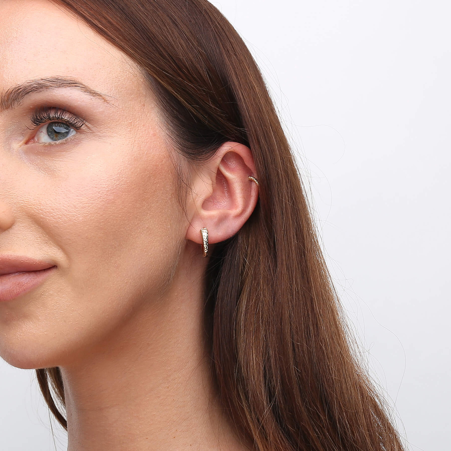 Facettierte Creolen aus hochwertigem 585er Gold (14 Karat) mit präzise geschliffenen Facetten, die ihnen einen einzigartigen Glanz verleihen und das Licht intensiv reflektieren. Die klassische Form in Kombination mit der einzigartigen Verarbeitung macht sie zum perfekten Accessoire sowohl für den Alltag als auch für besondere Anlässe. Die Ohrringe haben einen Klappverschluss, der für Tragekomfort und Stabilität sorgt.