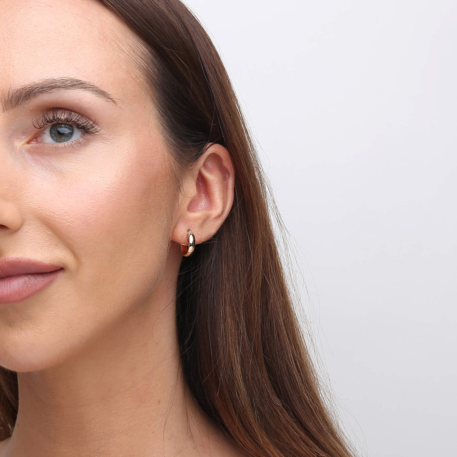 - Klassische minimalistische Creolen mit komfortablem Klappverschluss. Hergestellt aus 585er Gelbgold (14 Karat).