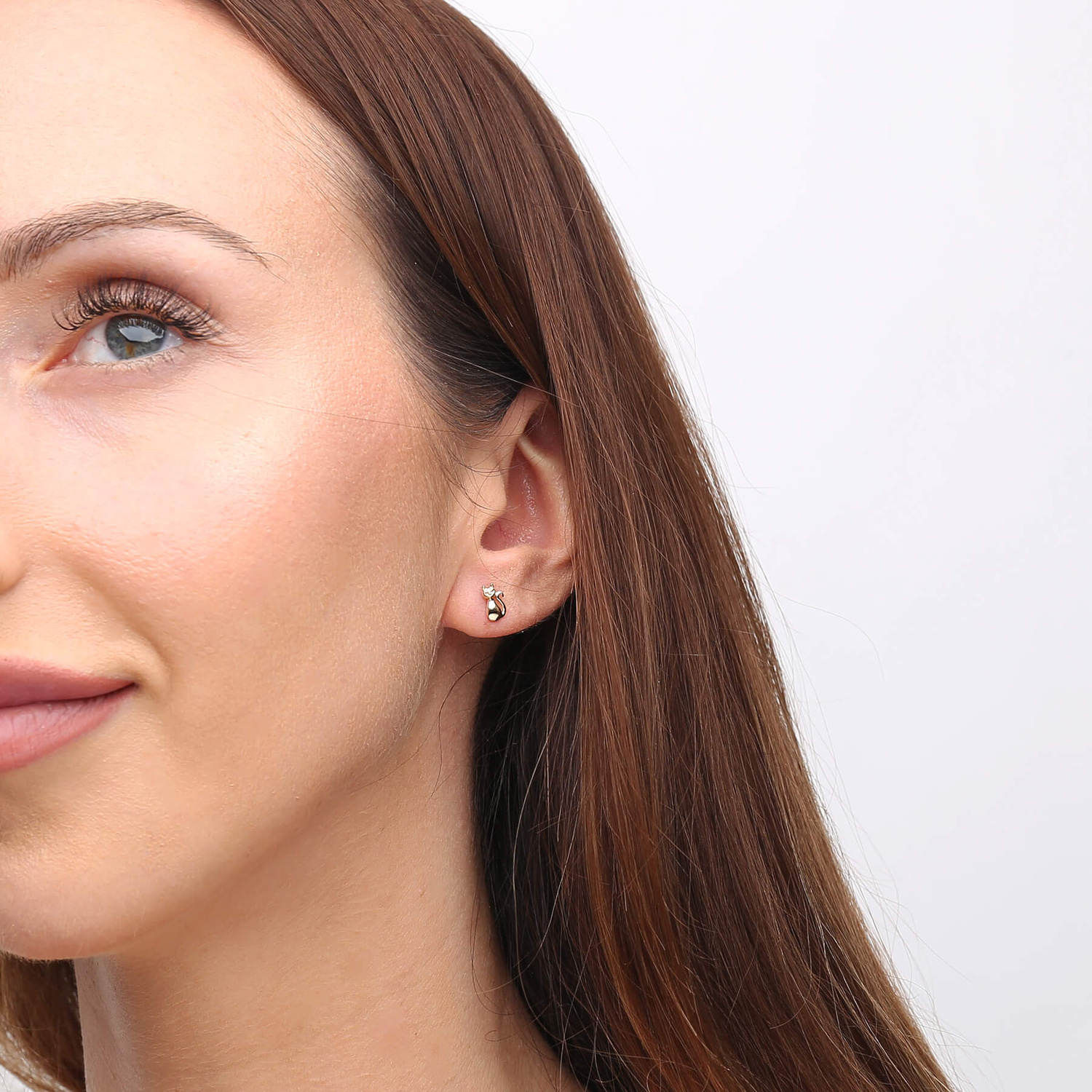 - Goldene Katzenohrringe mit Steckverschluss. Hergestellt aus hochwertigem 585er Gold (14 Karat).