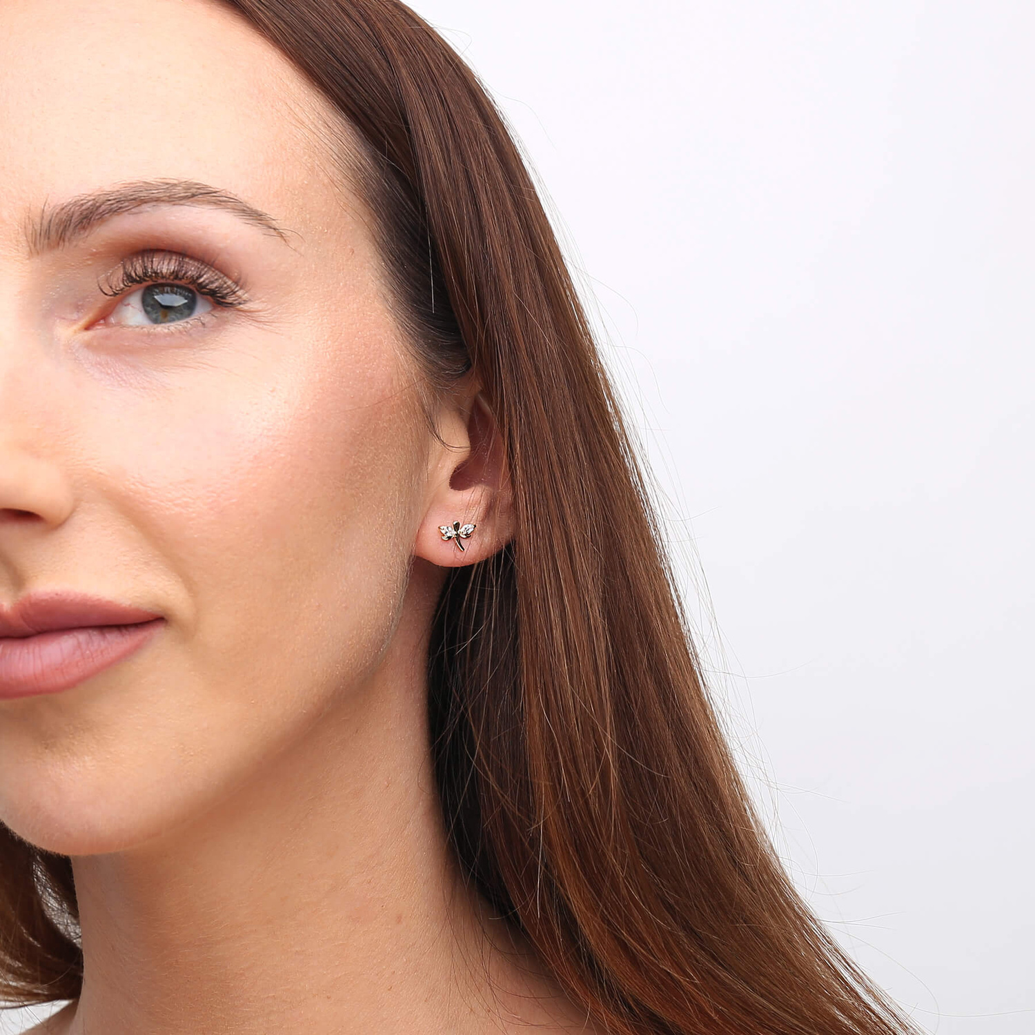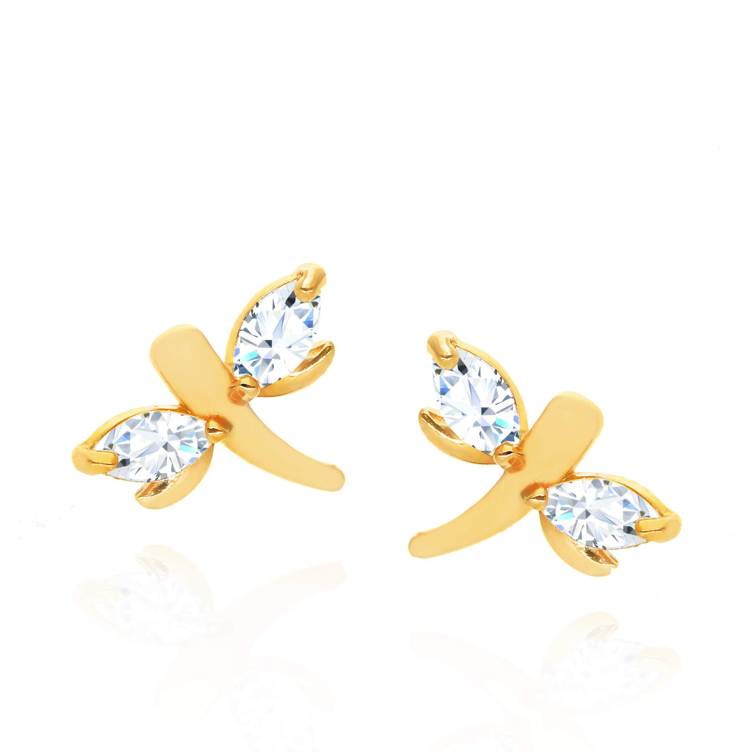 Goldene Ohrringe Libelle 585 Libelle Zirkonia auf Steckstift