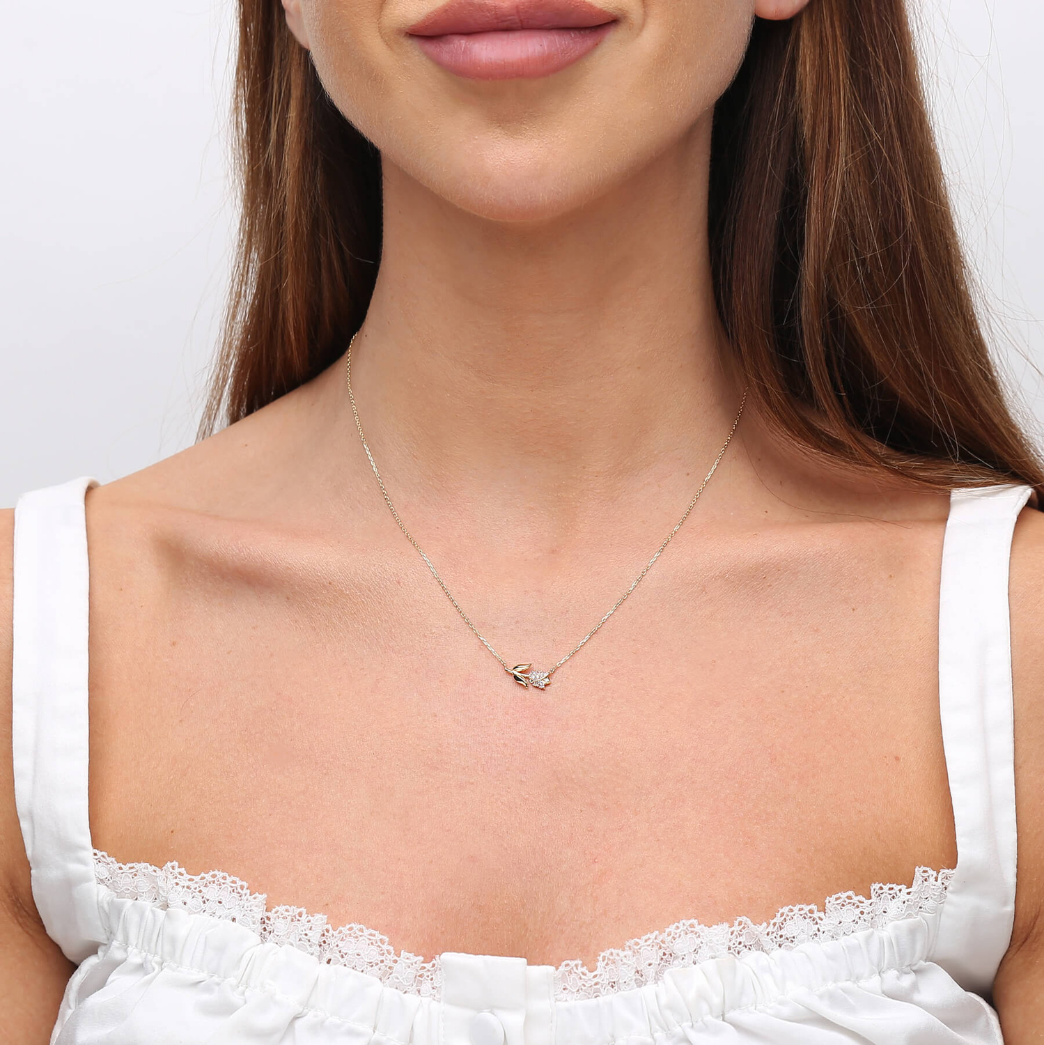- Dezente Halskette mit einem rosenförmigen Anhänger, der mit rosa Zirkonen besetzt ist. Die Halskette ist aus hochwertigem 585er Gold (14 Karat) gefertigt.