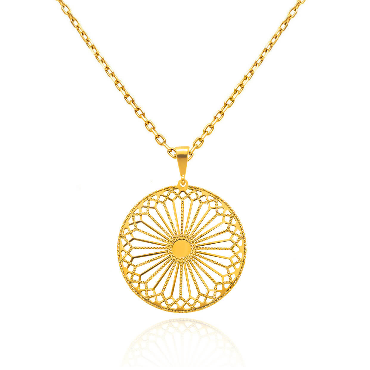 Schöner Goldanhänger in Form eines Herzens. Handgefertigt aus hochwertigem 585er Gold. Eindrucksvoller durchbrochener Anhänger, der von außen ornamental eingeschnitten ist, schimmert schön im Licht. Die perfekte Ergänzung zu vielen Looks. Der Anhänger ist die perfekte Geschenkidee für einen lieben Menschen.
