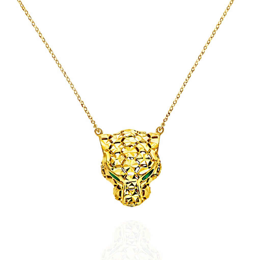 Gold damen-Halskette an diamantener Fußkettchenkette mit Tigermotiv mit grünen Augen. Luxusschmuck für ganz besondere Anlässe. Der perfekte Schliff für jedes Outfit. Handgefertigt und Hochreines 585er Gold gewährleistet Farbechtheit und Farbstabilität.