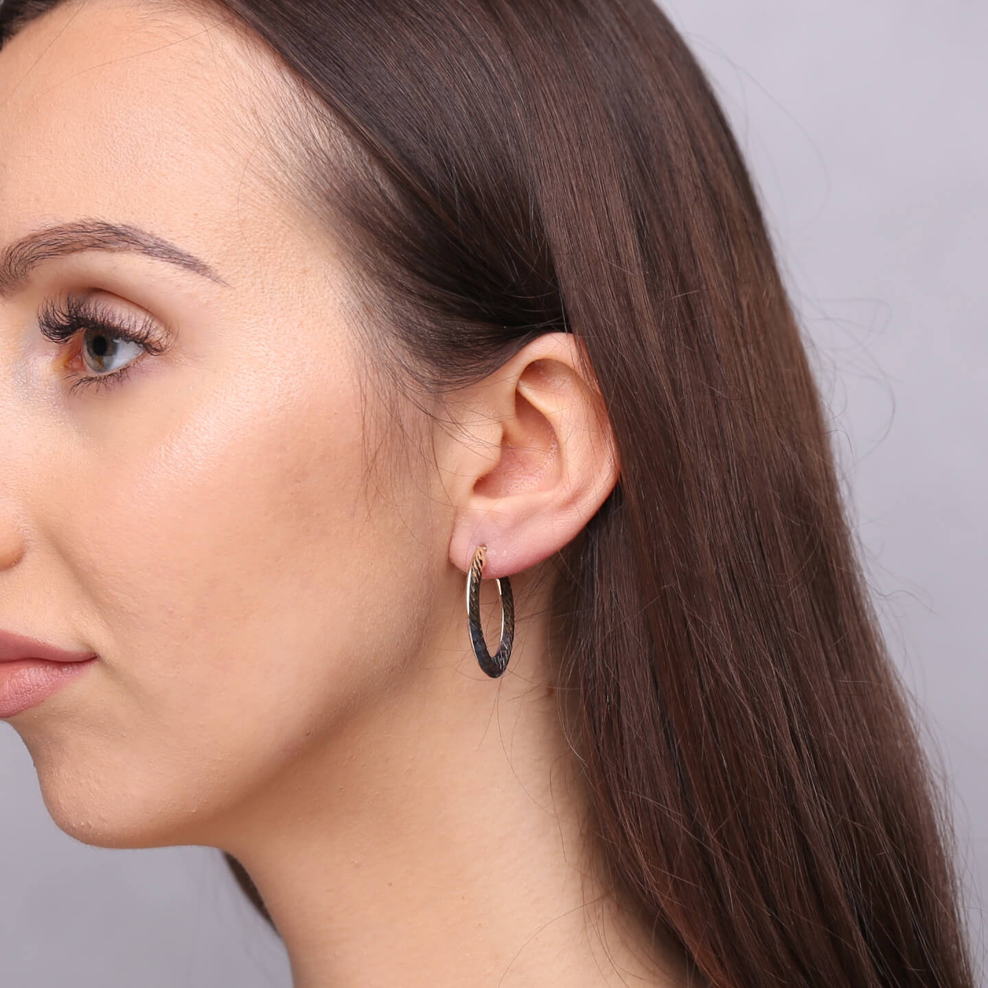 Gold ovale Kreis Ohrringe aus hochwertigem Gold Probe 585 - kombination aus höchster Qualität und Beständigkeit von Gold gegen äußere Einflüsse. Die Ohrringe sind aus gelb- und Weißgold. Die Kreise sind an den Enden verjüngt und facettiert für einen ungewöhnlichen Blitzeffekt. Ohrringe sehen an den Ohren elegant aus.