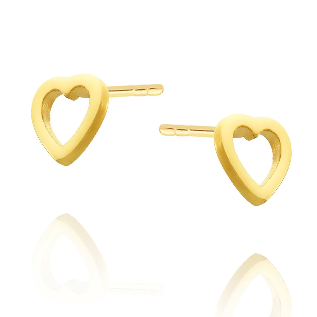 - Goldherz-Ohrringe. Hochwertiges 585er Gold, das am widerstandsfähigsten gegen äußere Einflüsse ist.