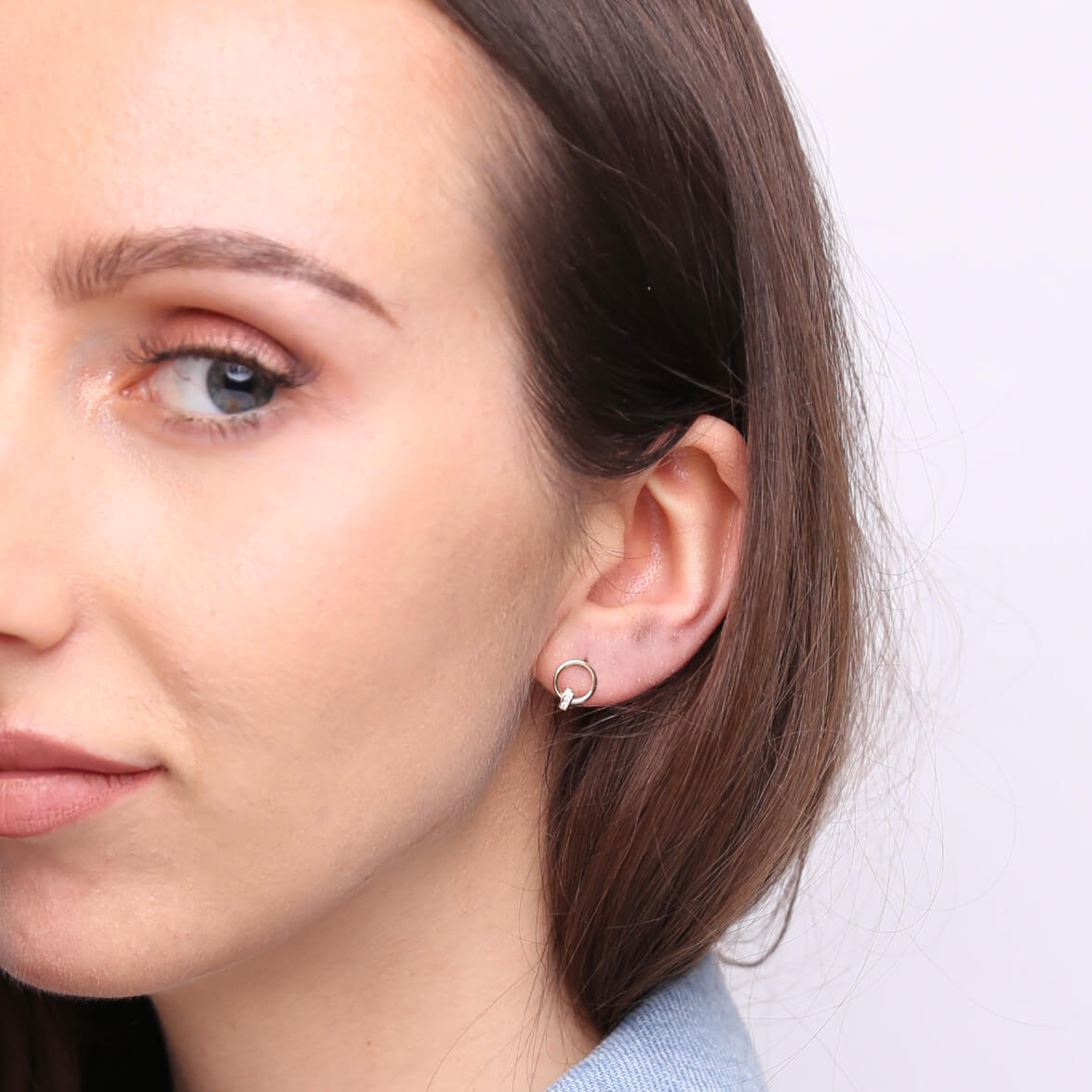 Goldohrringe mit Zirkonia-Verschlussam Stiel. Gefertigt aus hochwertigem Gold 585 Reinheit. Minimalistische Ohrringe, sehen schön aus an den Ohren.