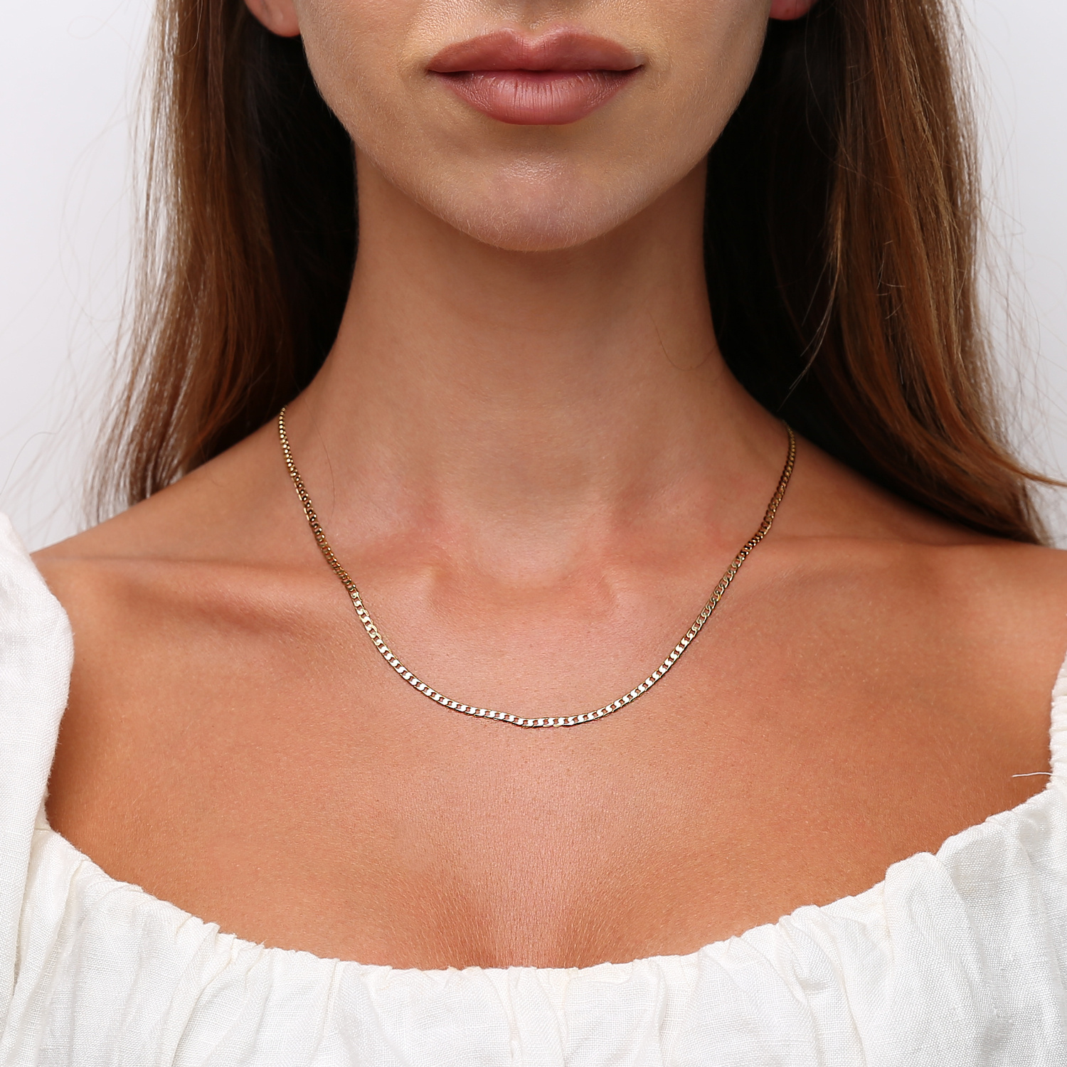 Präzise gefertigte massive Goldkette aus hochwertigem 585er Gold (14 Karat). Dies garantiert Langlebigkeit und eine gleichbleibend goldene Farbe. Die Echtheit des Produkts wird durch eine Juwelier-Etikette und Stempel, die nach Prüfung durch das Polnische Edelmetallamt angebracht wurden, bestätigt. Das Design, bekannt als Panzerkette, ist eine beliebte und vielseitige Wahl für Damen und Herren. Die Verbindung der Glieder schützt die Kette vor versehentlichem Reißen. Die Oberfläche der Glieder ist beidseitig diamantiert und besitzt spezielle Schliffe, die der Kette zusätzlichen Glanz verleihen. Ein robuster Karabiner-Verschluss erleichtert das Anlegen der Kette. Dieses Modell ist eine feine Variante der Panzerkette mit einer Breite von 2,5 mm. Die Goldkette bildet ein perfektes Schmuckset in Kombination mit einem eleganten Goldanhänger oder einem heiligen Medaillon.