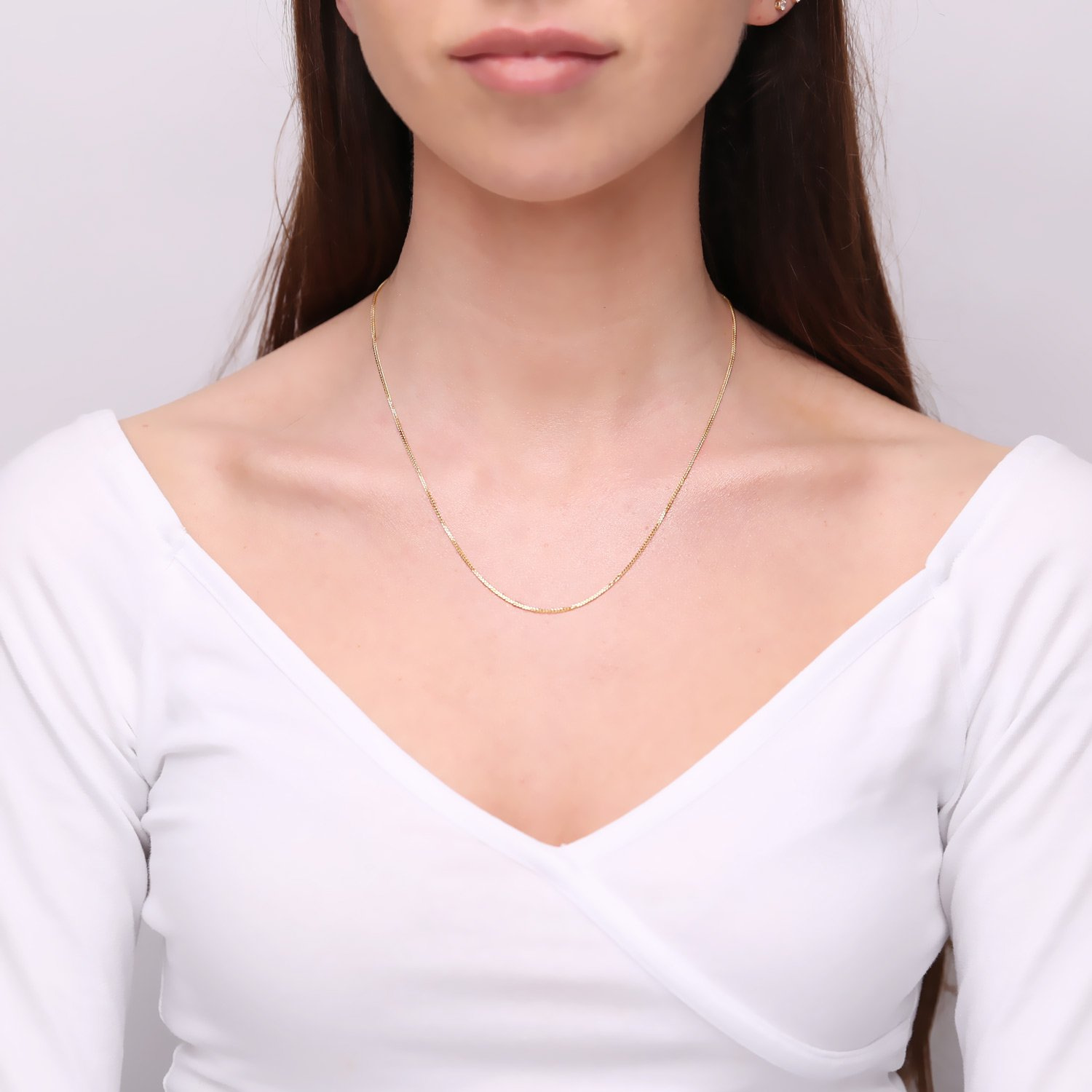 - Goldkette, handgefertigt aus 585er Gelbgold (14 Karat). Der Fuchsschwanz ist ein typisch damenhaftes Gewebe, das am Dekolleté schön schimmert.
