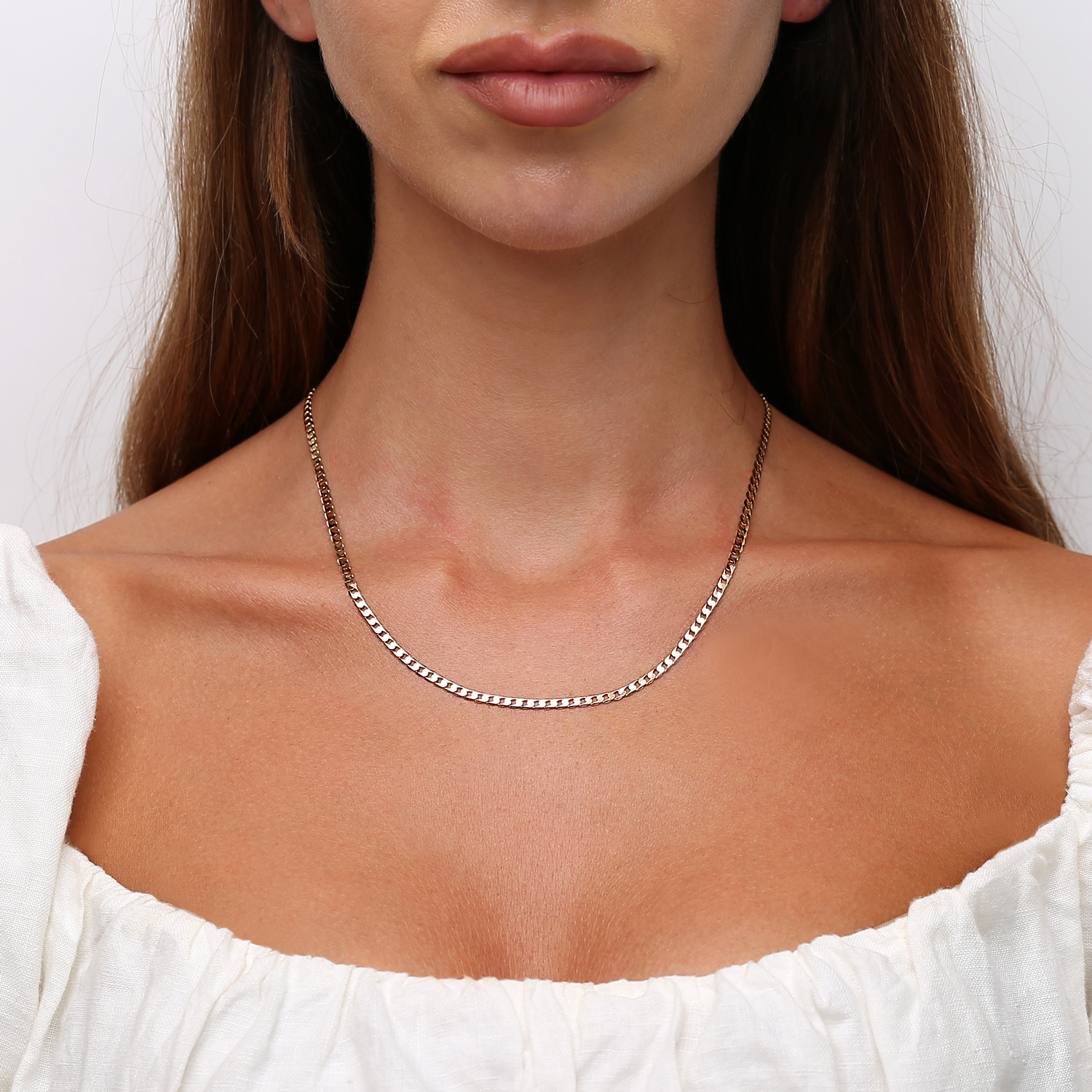 Das Modell trägt eine Kette mit 45 cm Länge.