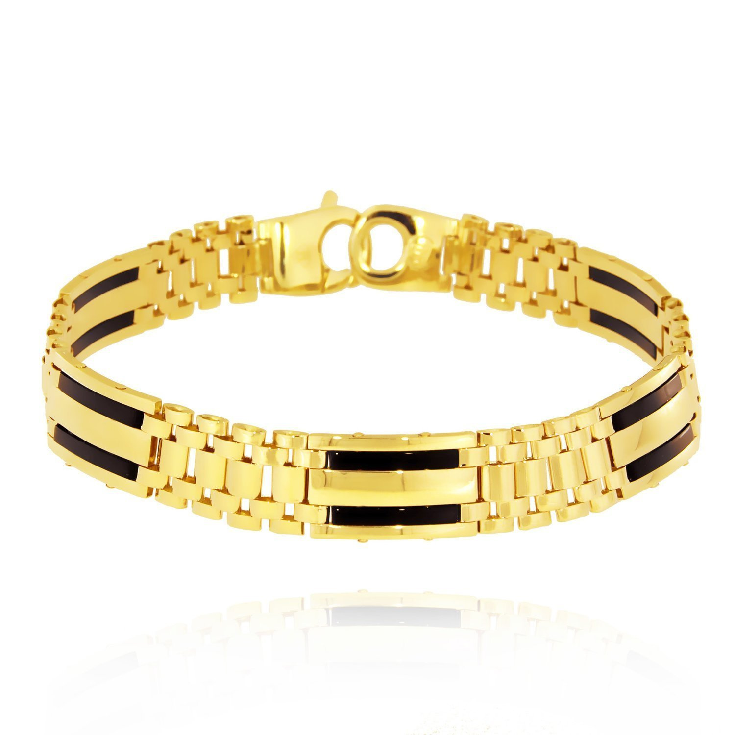 • Elegantes Goldarmband aus hochreinem Gelbgold 585 mit schwarzen Emailleeinsätzen. Ein Goldarmband ist die Art von Schmuck, mit der jeder Mann wirklich stilvoll aussieht.