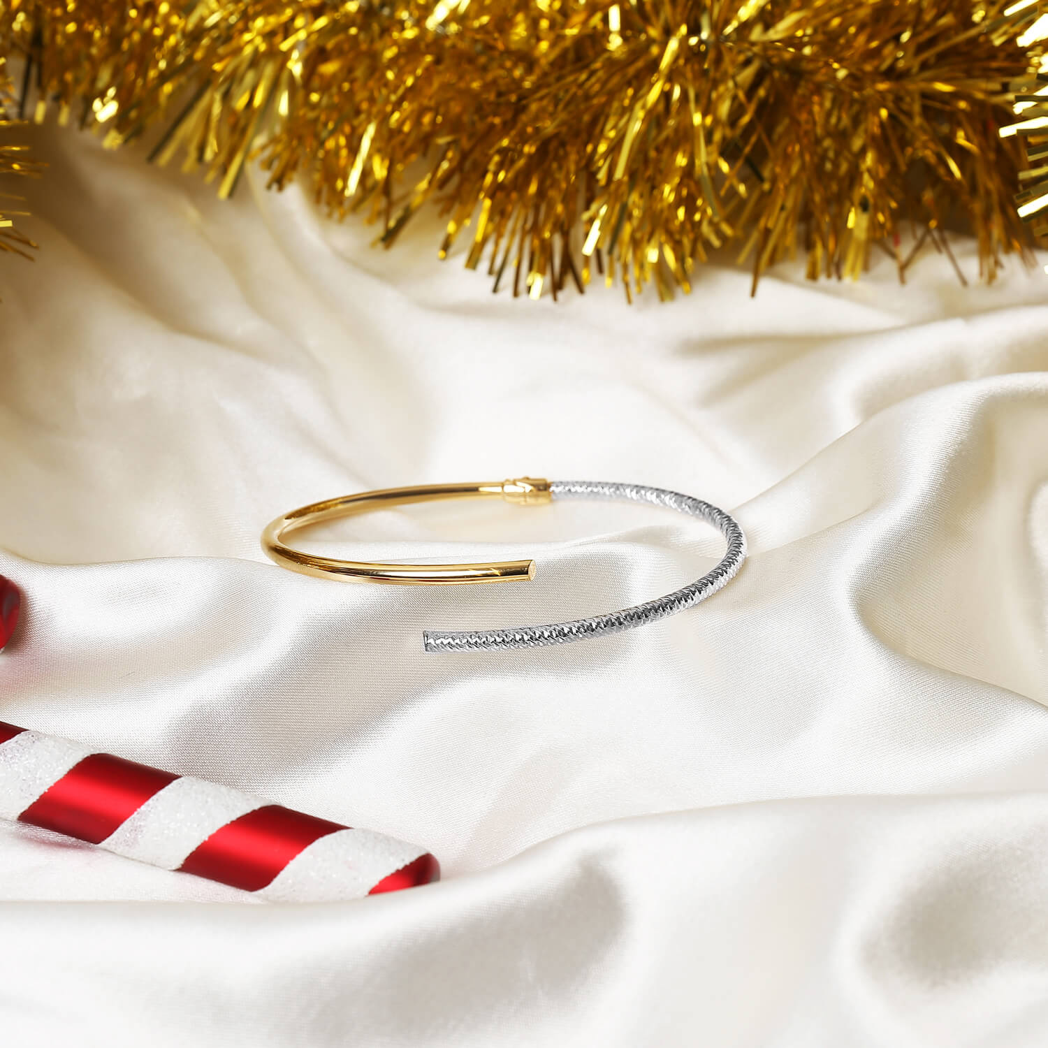 Gold starrer Kreis 585 Armreif Weiß- und Gelbgold Diamant halboffenes Scharnierarmband