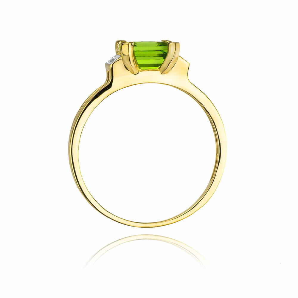 Verlobungsring aus Gold mit großem Olivin 1,10 ct und Diamanten 0,03 ct