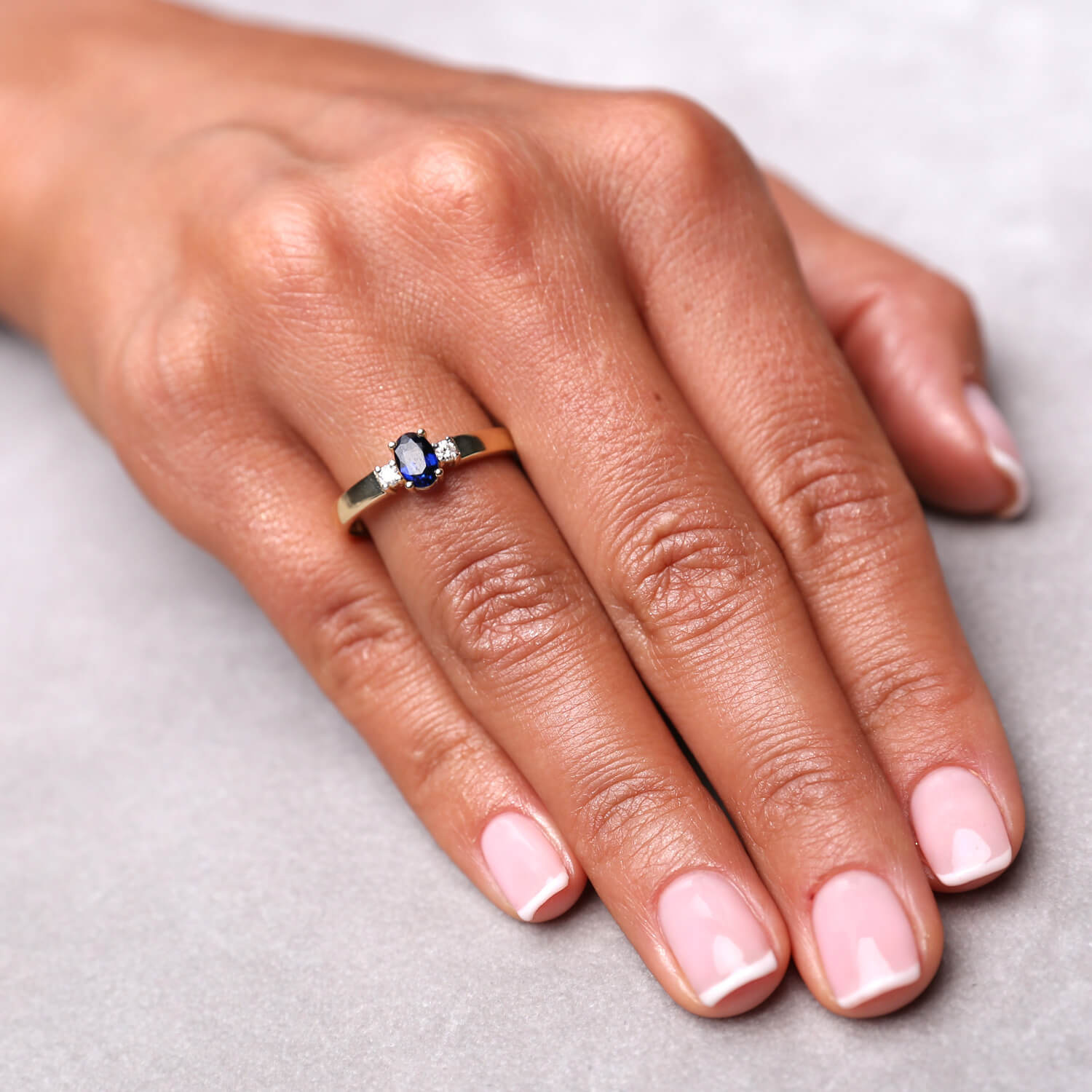 Verlobungsring aus Gold mit großem Saphir von 0,70 Karat und Diamanten von 0,08 Karat