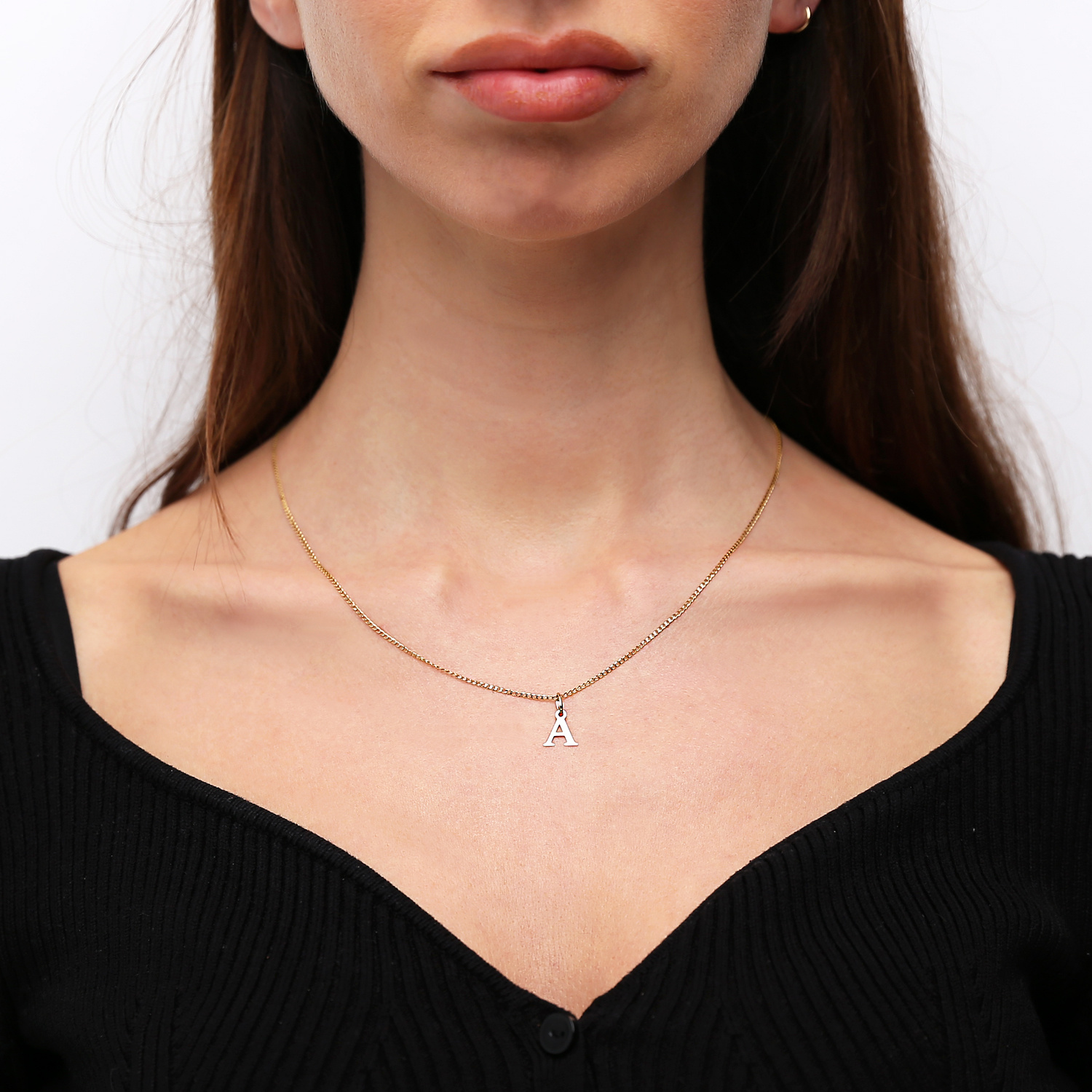 - Ein Goldanhänger in der einfachen Form des Buchstabens A, hergestellt aus 585er Gold.