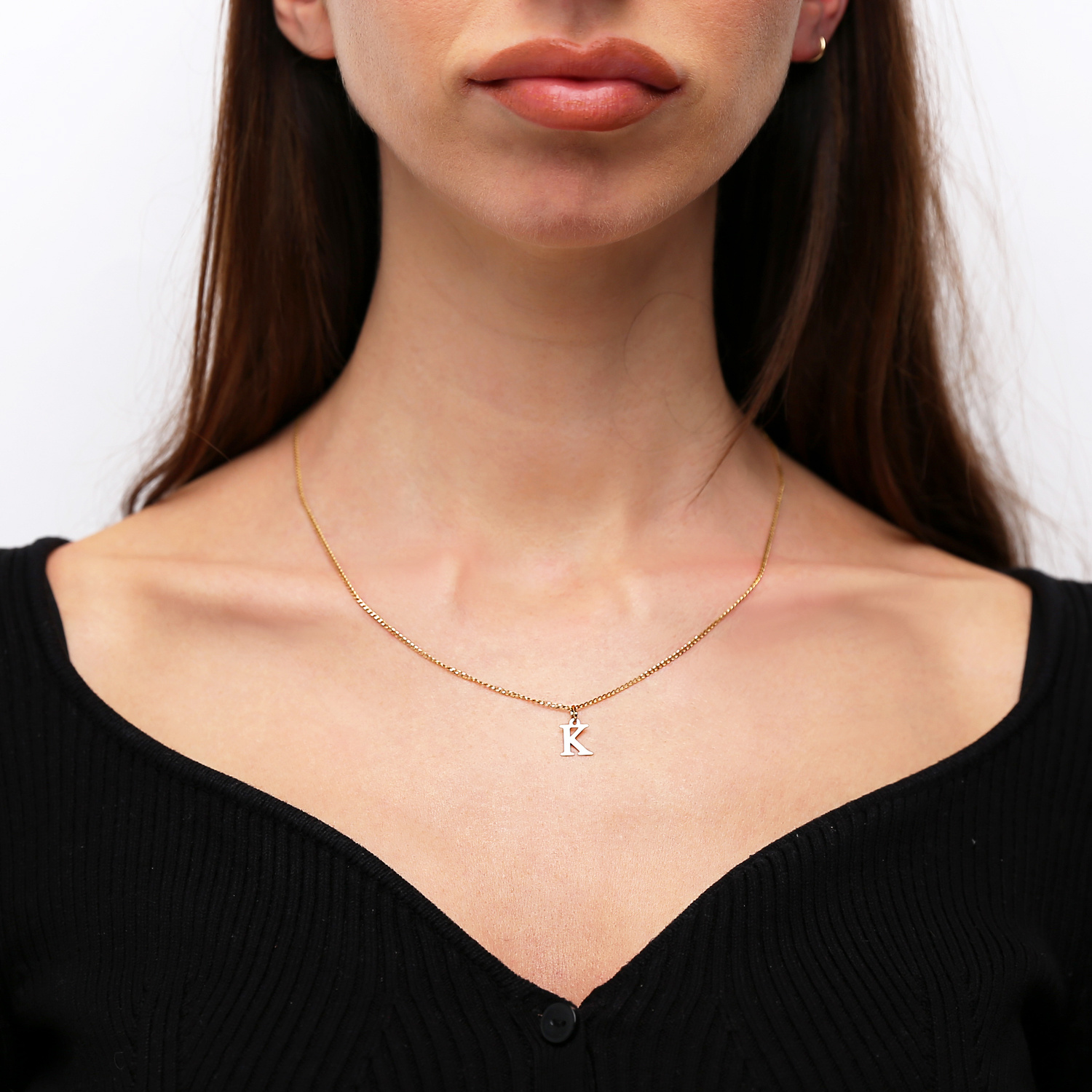 - Ein Goldanhänger in der schlichten Form des Buchstabens K, hergestellt aus 585er Gold.