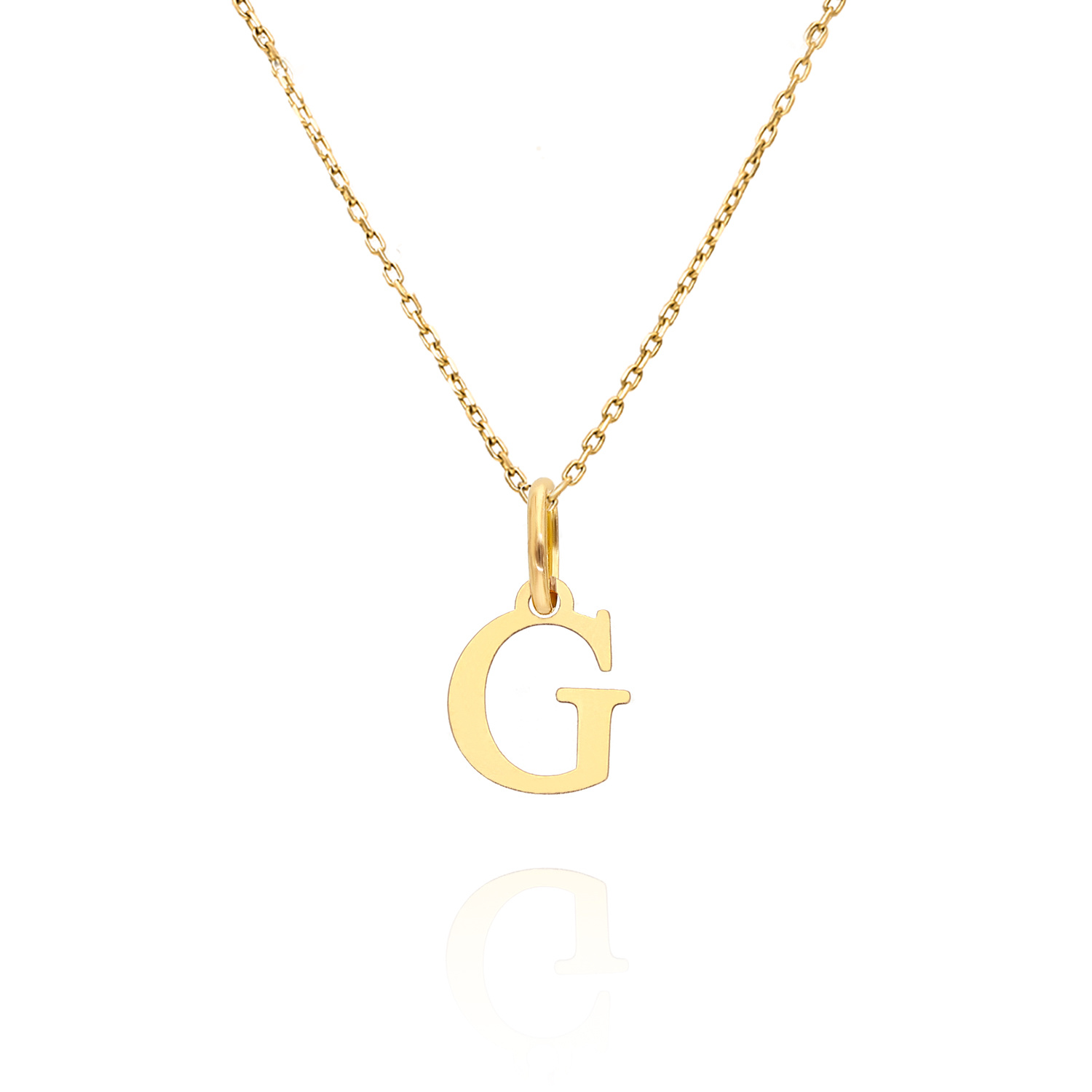 Gold-Anhänger Buchstabe G, aus gelbem 14-karätigem Gold (Muster 585). Die Beschriftung ist klein und minimalistisch, passt zu jeder zarten Kette wie Fußkettchen, Singapur oder dekorativer - Fuchsschwanz. Der Buchstabe J ist das perfekte Geschenk für Frauen zu ihrem Geburtstag oder Namenstag.