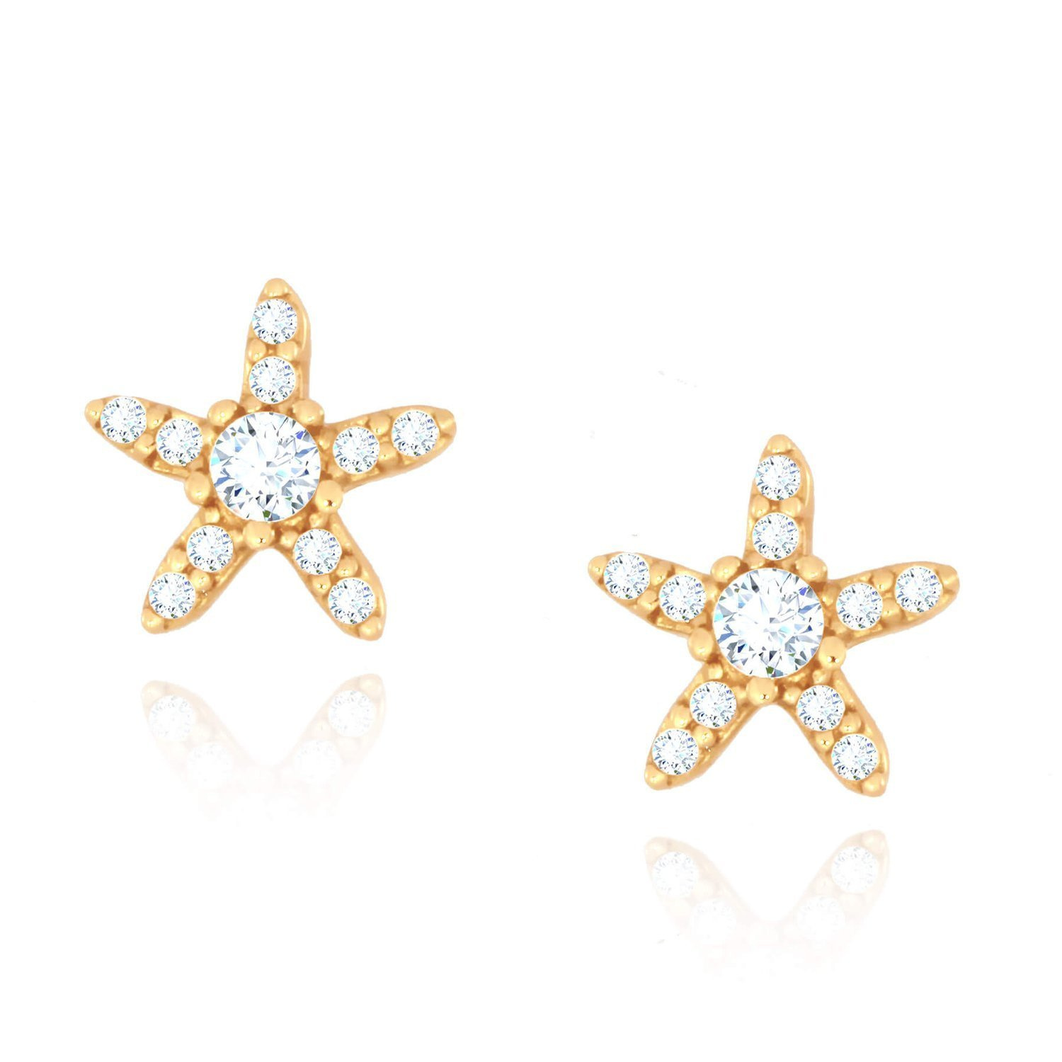 Gold 585 Seestern-Ohrringe mit Zirkoniastift