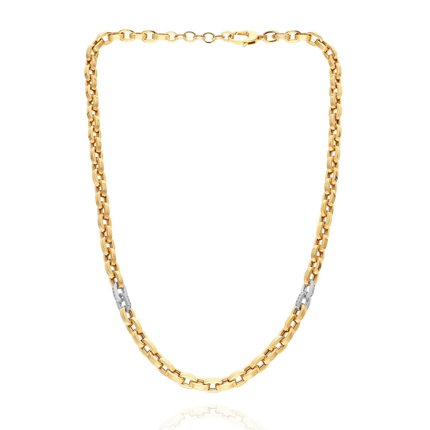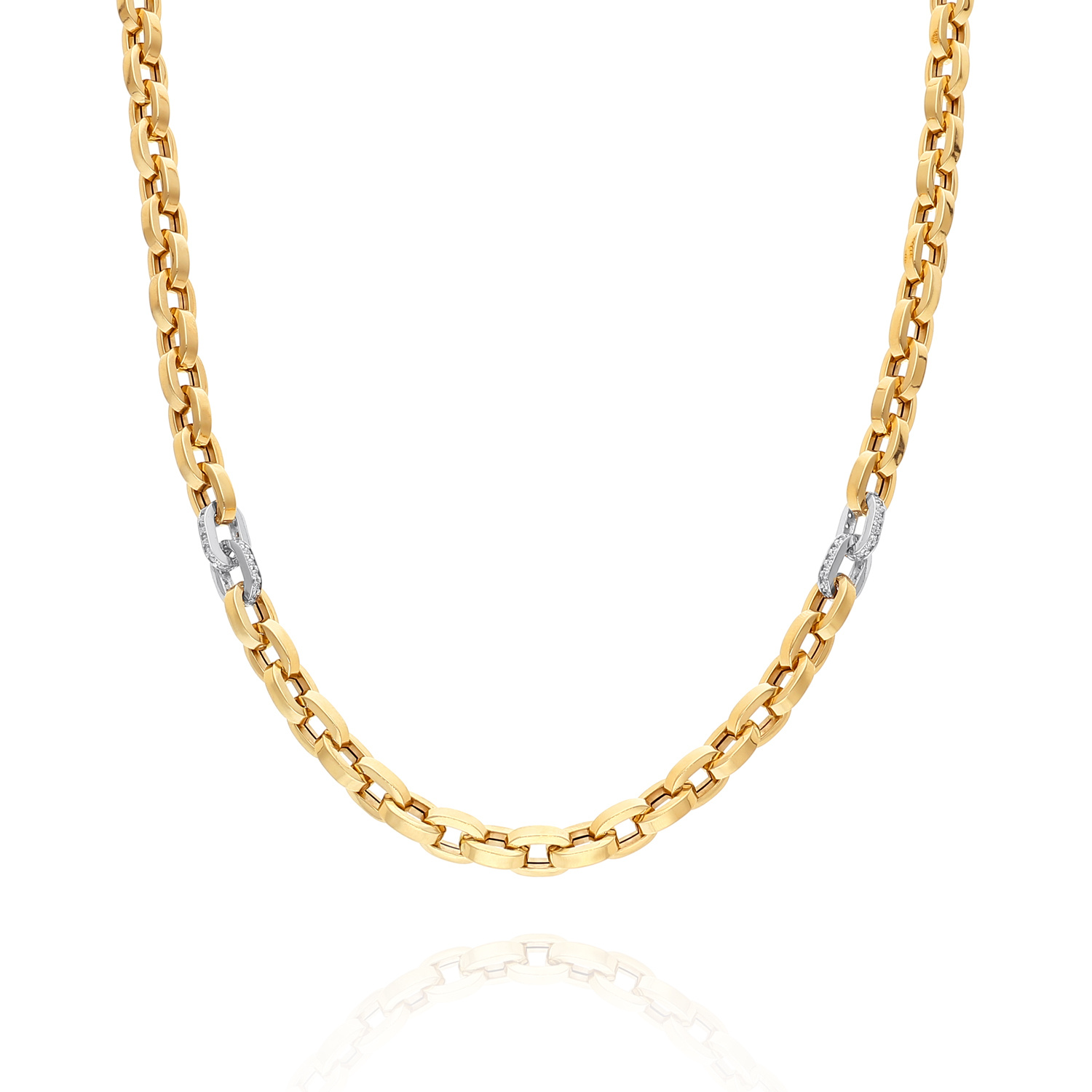 - Reiche Halskette - Halskette mit schrägem Geflecht. Die Glieder sind mit Diamanten besetzt, wodurch die Kette wunderschön glänzt. Vollständig aus hochreinem 585er Gelbgold gefertigt. Ideal für Fans von ausdrucksstarkem Schmuck.