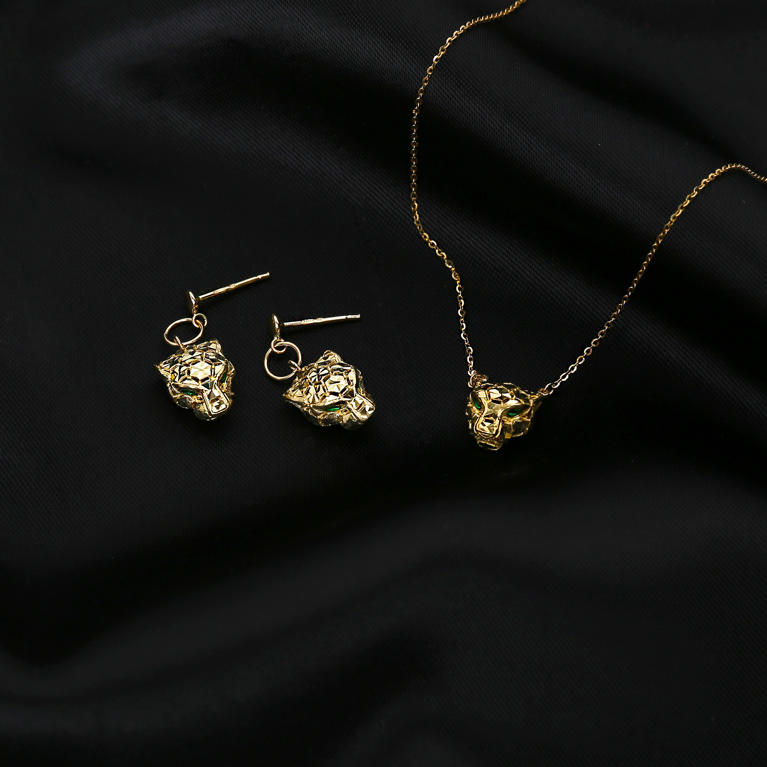 Gold 585 Anhänger Tiger Diamant durchbrochene Ohrringe