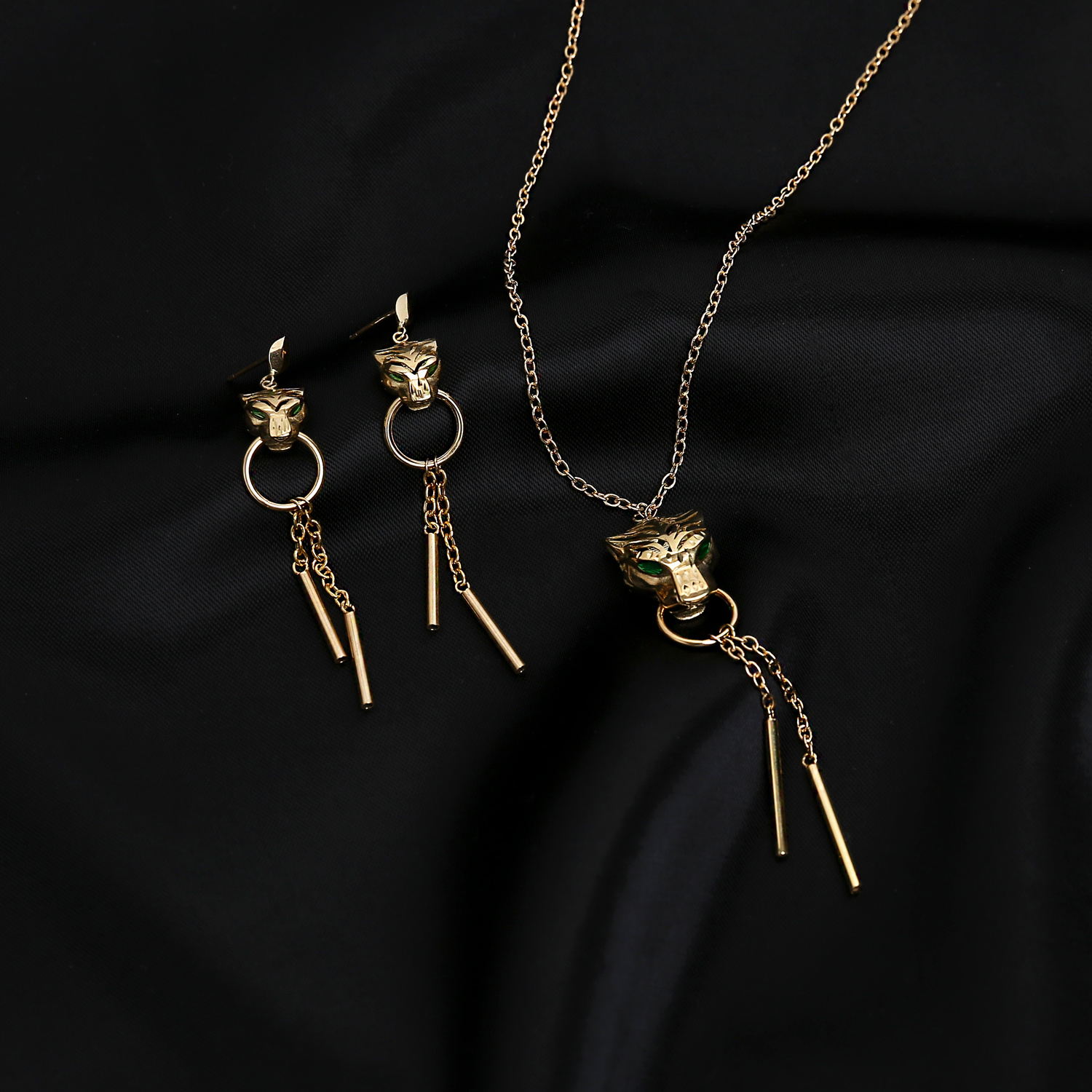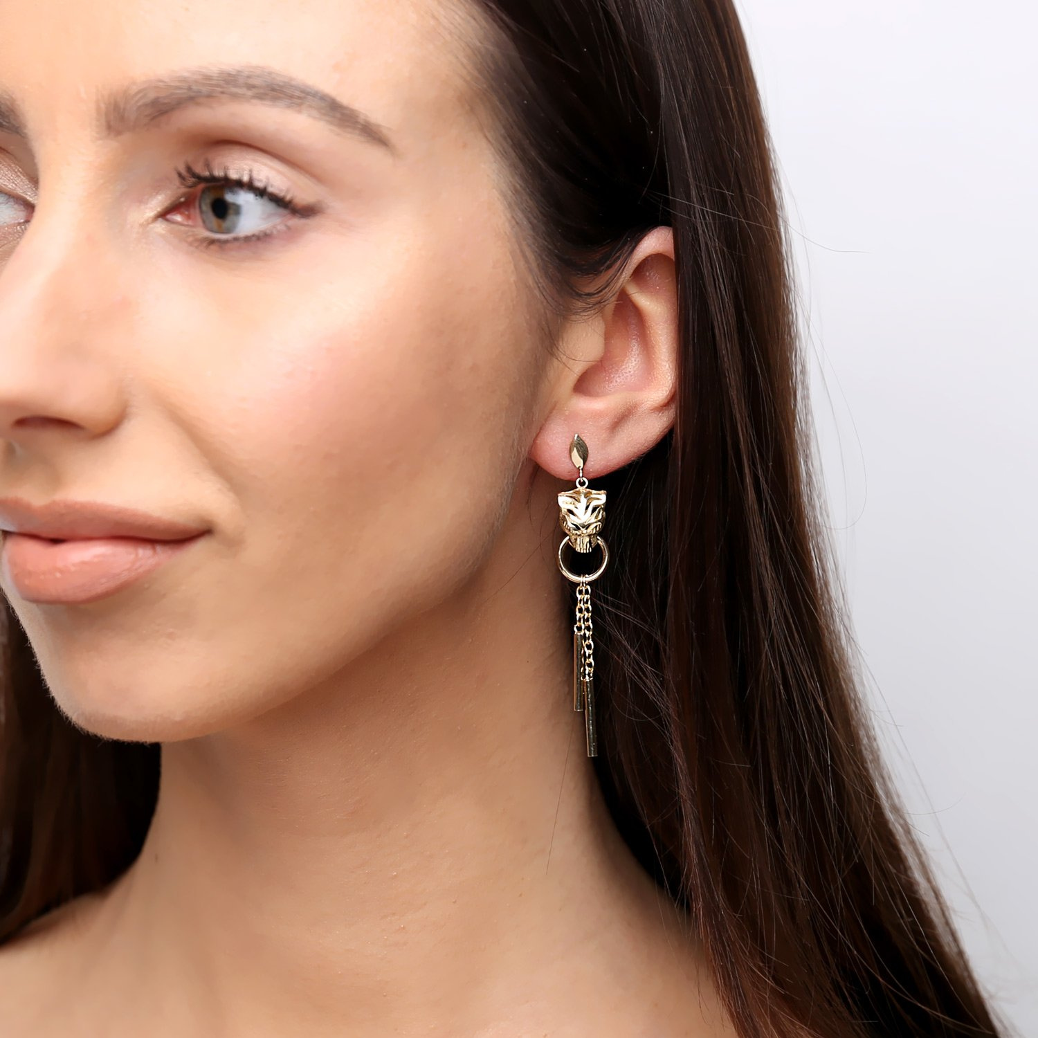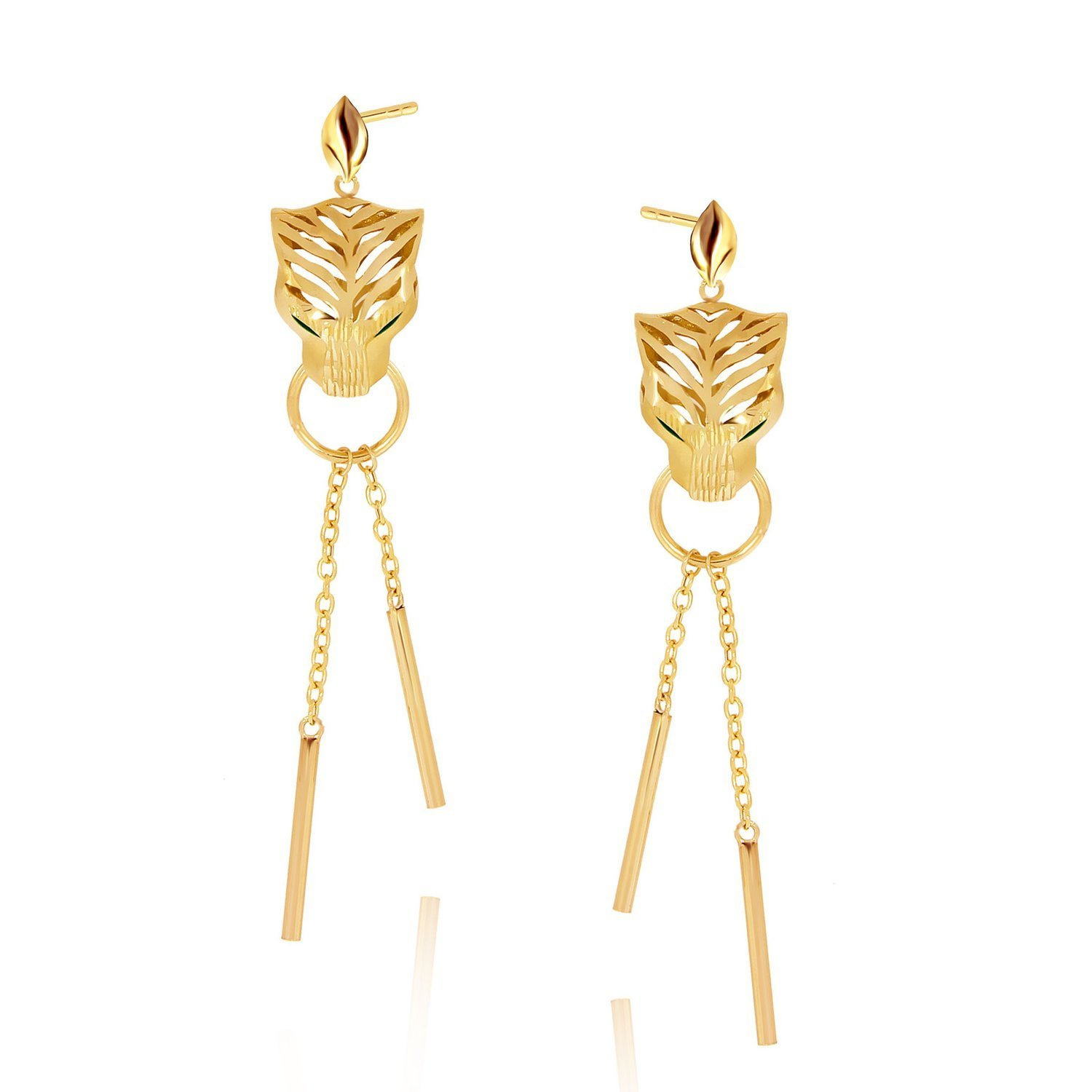 - Goldohrringe mit Tigerkopf und hängenden Stäbchen. Bequemer Stiftverschluss. Ein Vorbild für die selbstbewusste Frau - eine echte Tigerin.