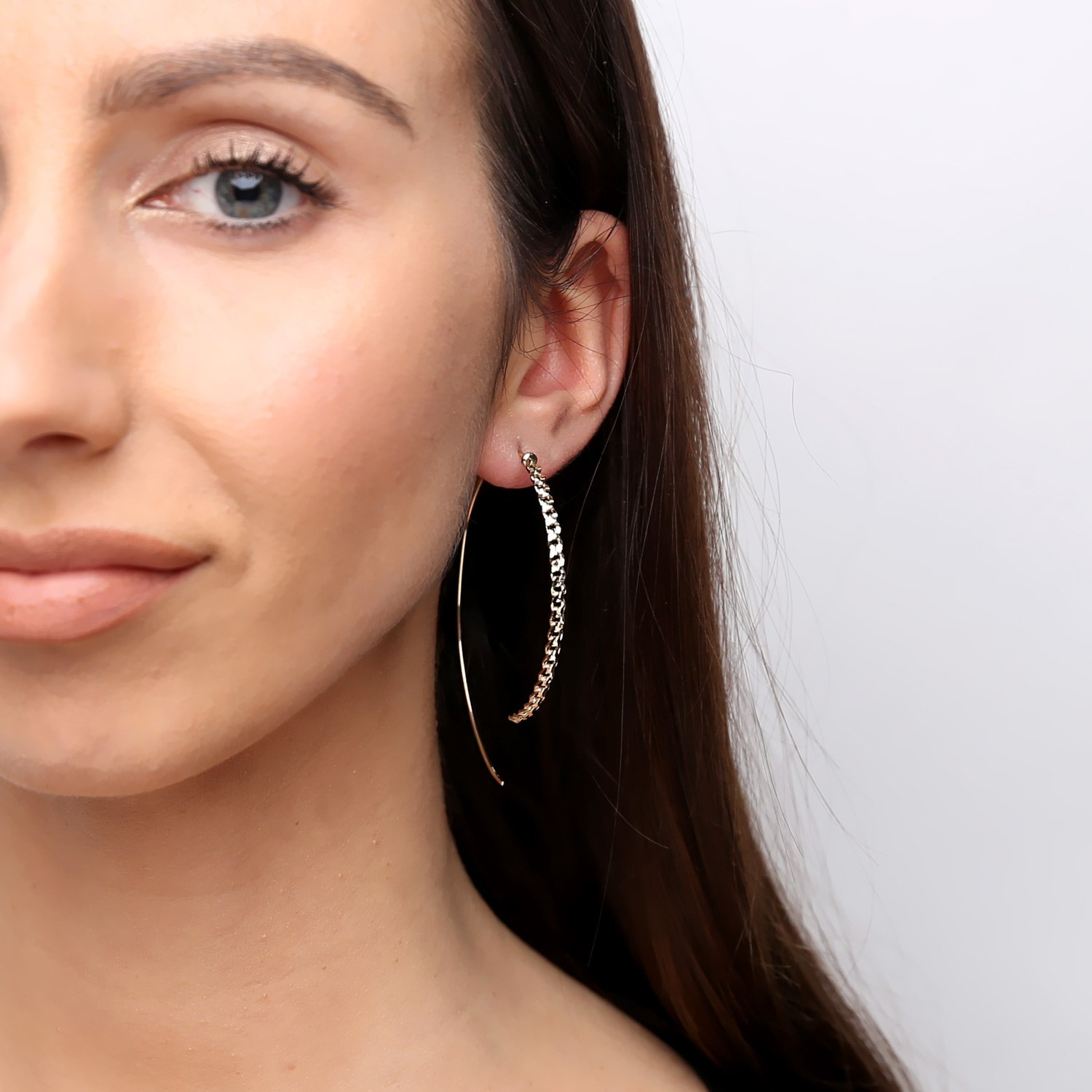 Ziehen Sie den glatten Teil des Ohrrings durch das Loch im Ohr. Die ovale Form verhindert, dass die Ohrringe verloren gehen.