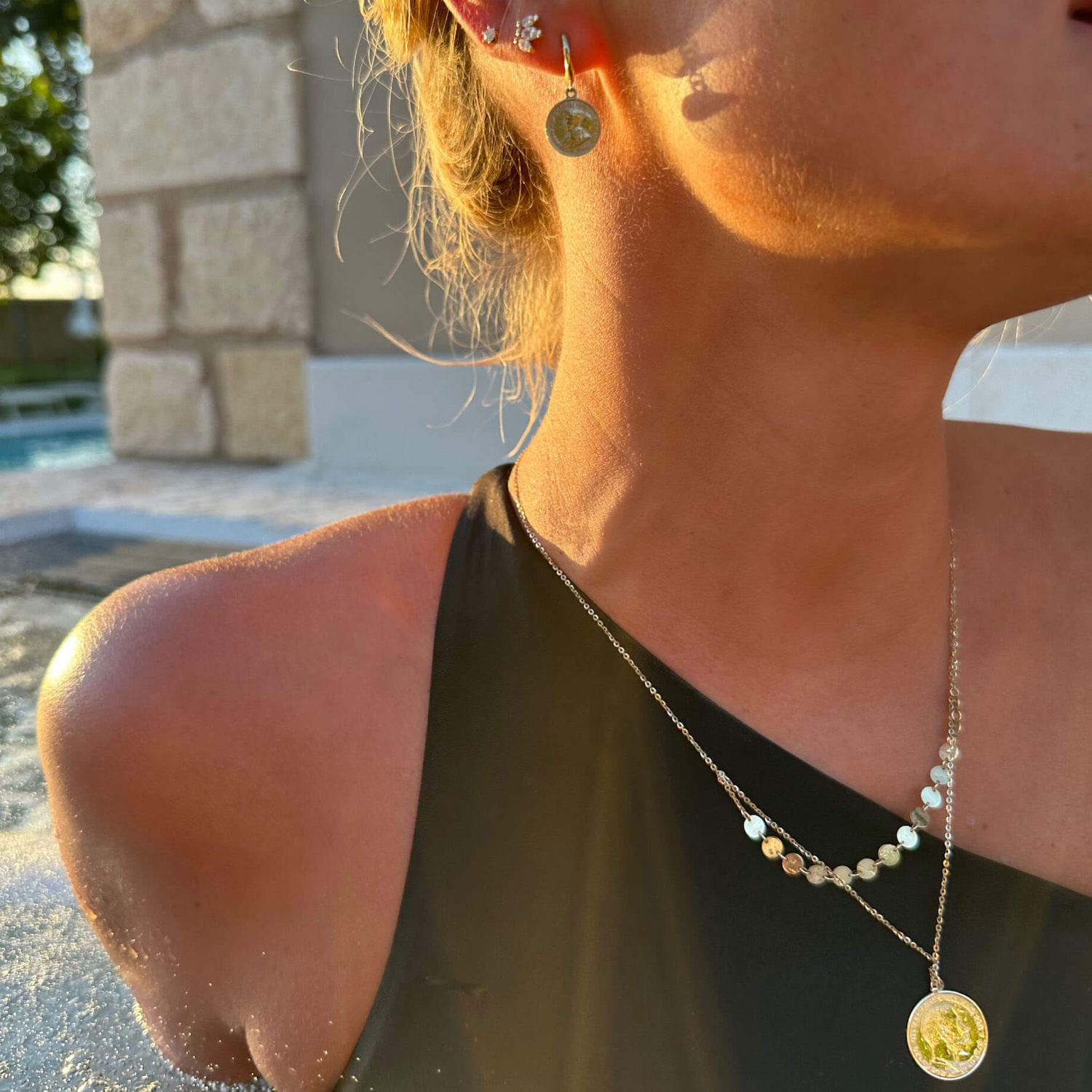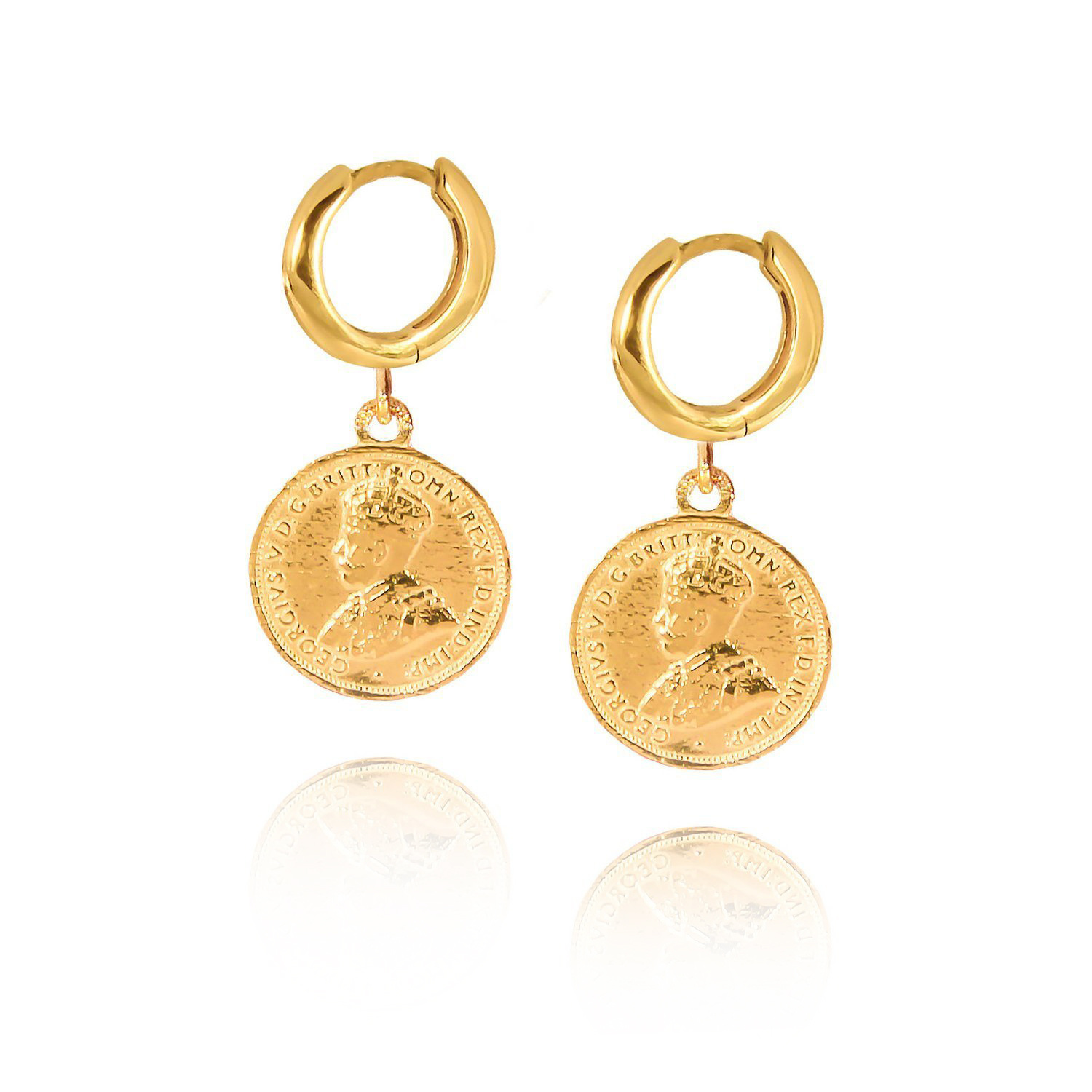 - Hängeohrringe mit Münzmotiv. Hergestellt aus 14-karätigem Gold.