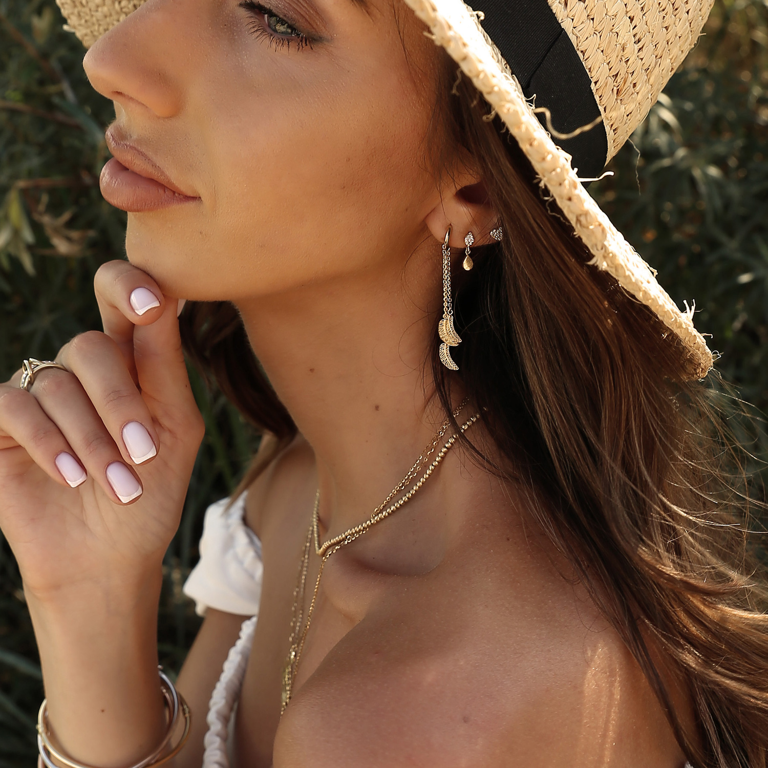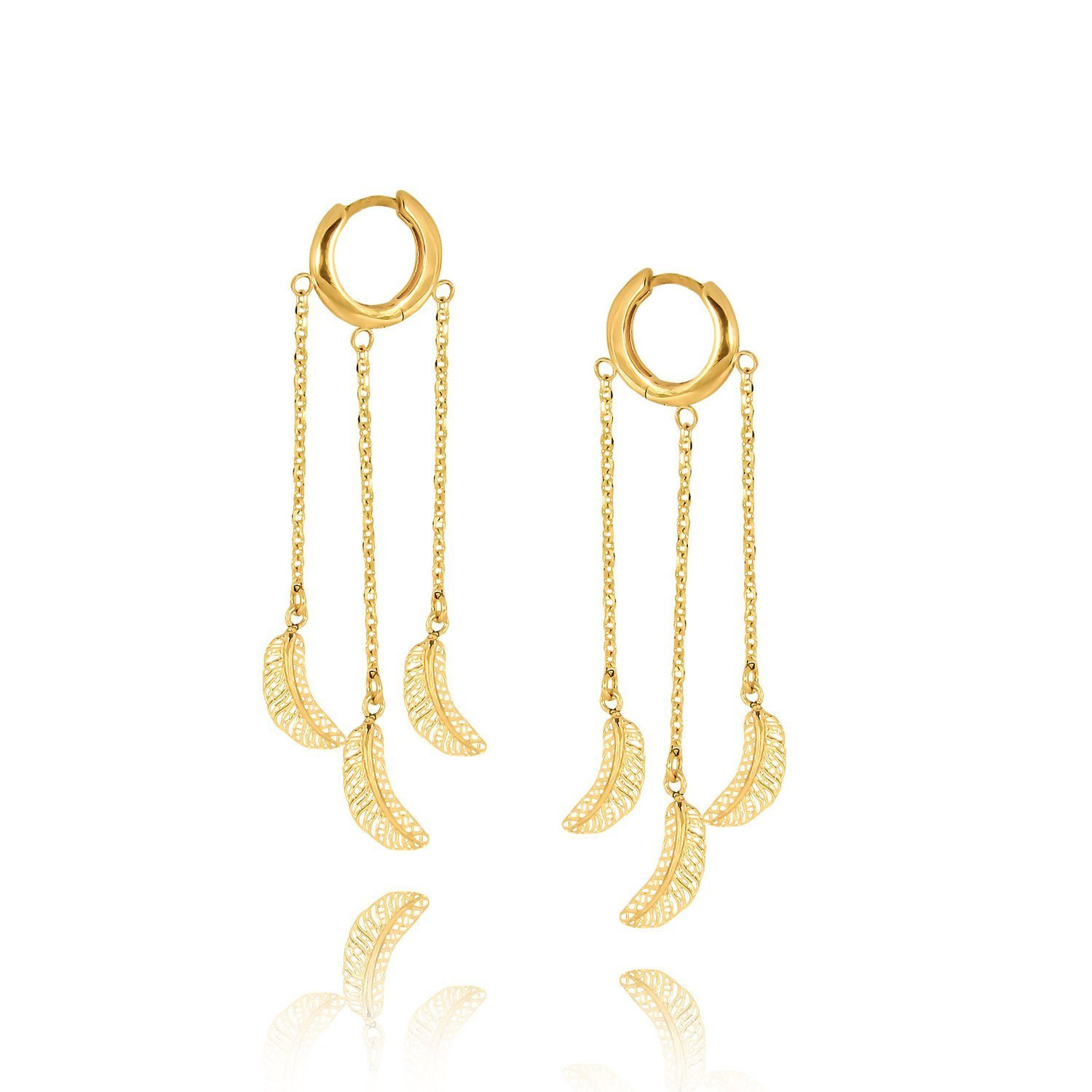 - Hängeohrringe mit Federmotiv. Hergestellt aus 14-karätigem Gold.