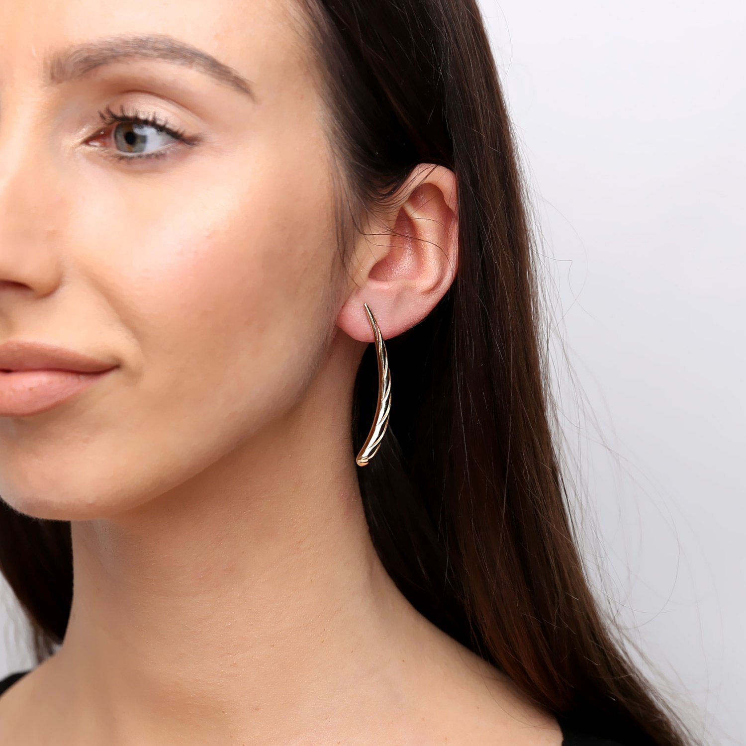 Goldfarbene Hornohrringe 585 große Anstecknadeln