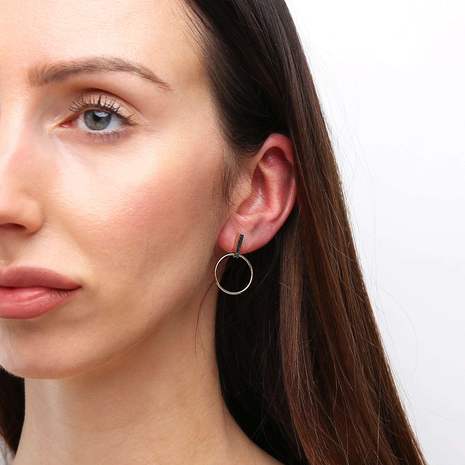 - Bezaubernde Creolen mit vertikalem, diamantbesetztem Element. Ausgestattet mit einem praktischen Steckverschluss. Das Gesamtgewicht der Steine beträgt 0,05 ct. Sorgfältig gefertigte Ohrringe aus hochreinem 585er Gold.